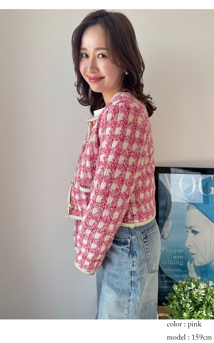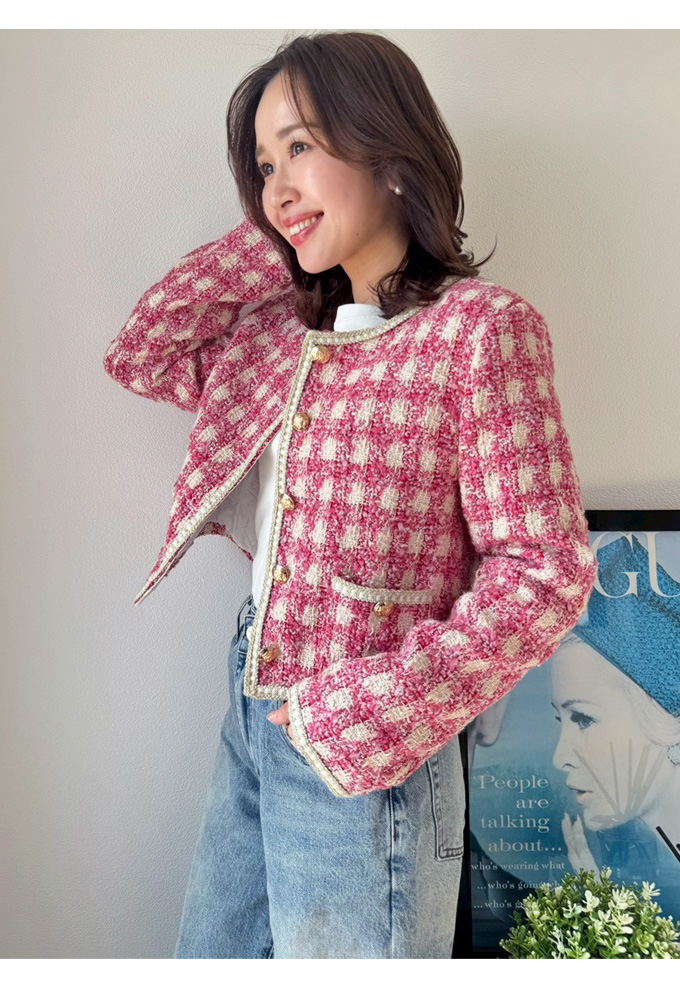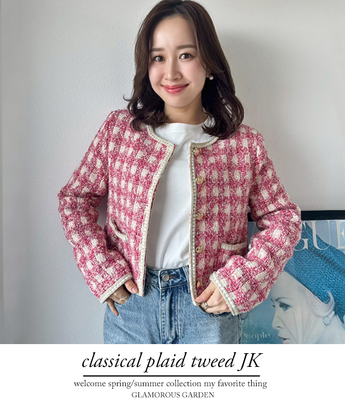 クラシカルツイードチェックジャケット【7e-831-06138】