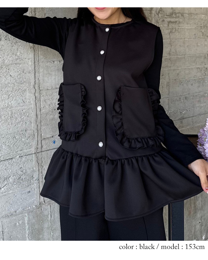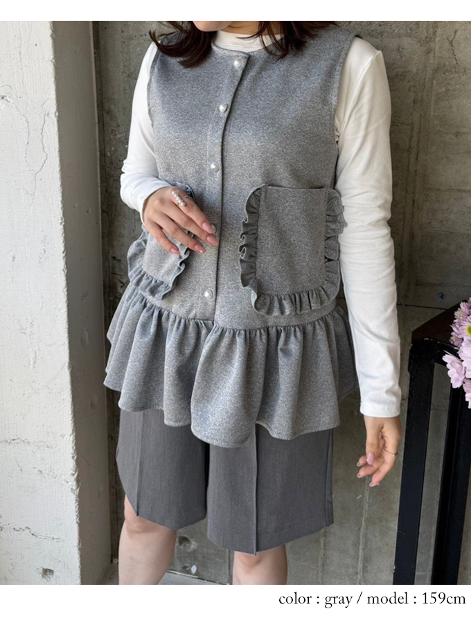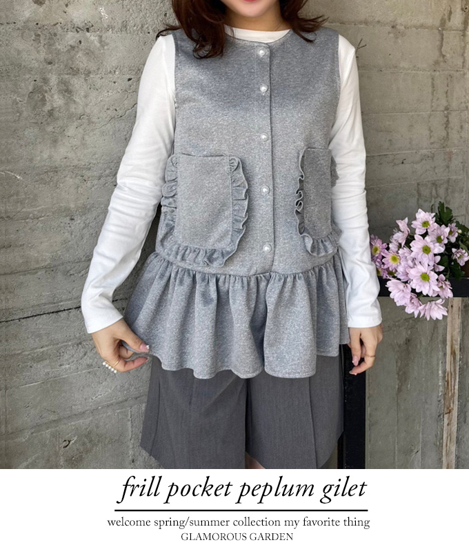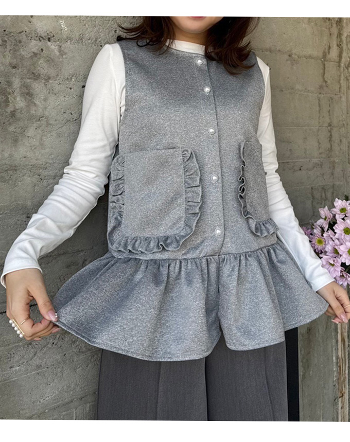 フリルのポケットがかわいいジレ♪