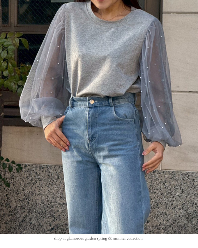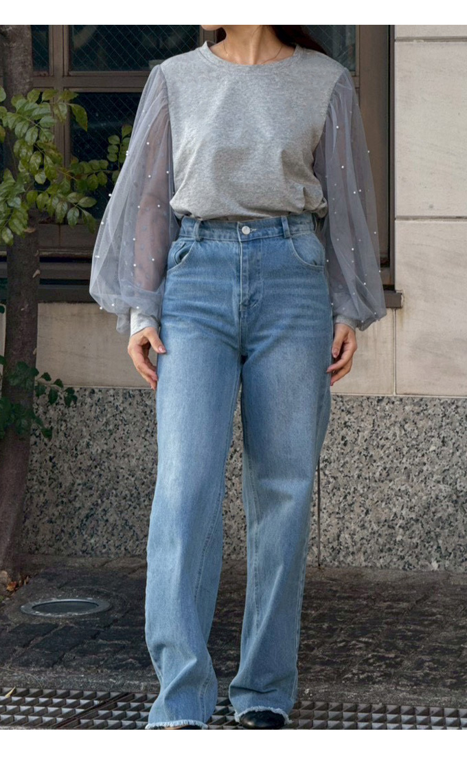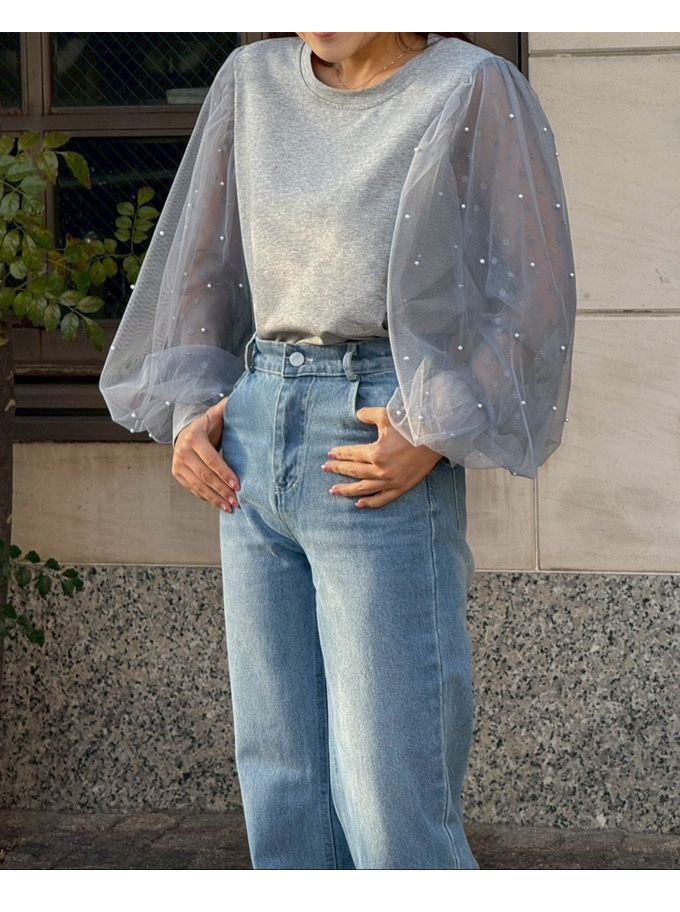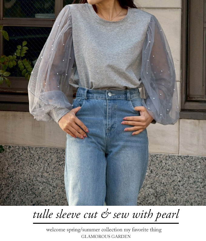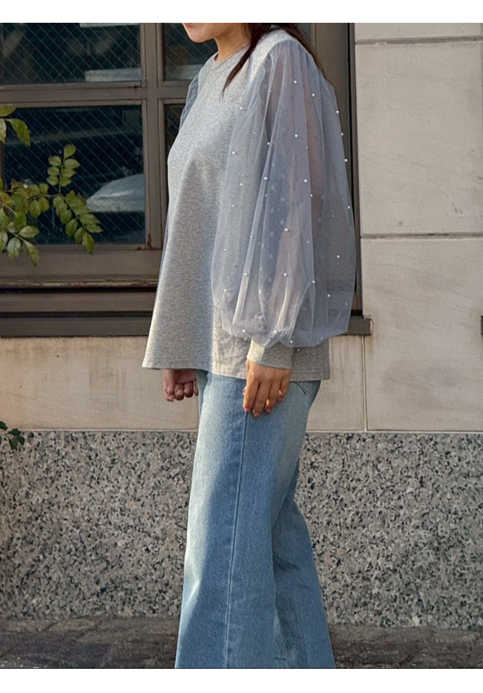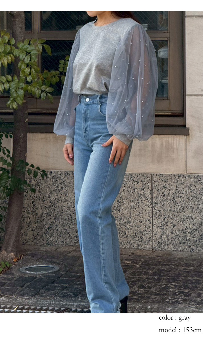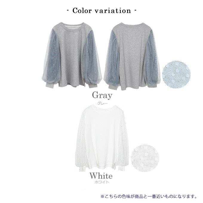 パール付きチュール袖カットソー【ネコポスOK】【7e-831-06150】