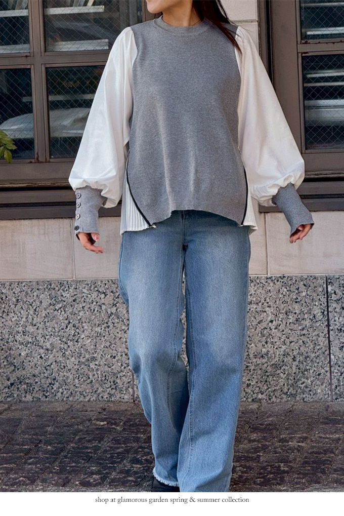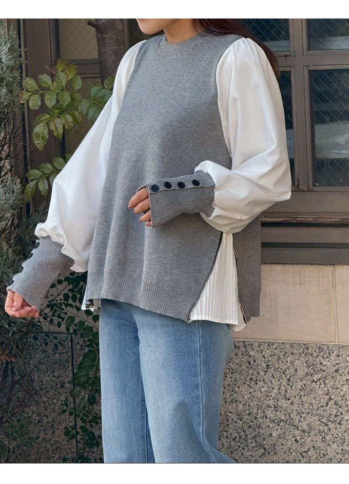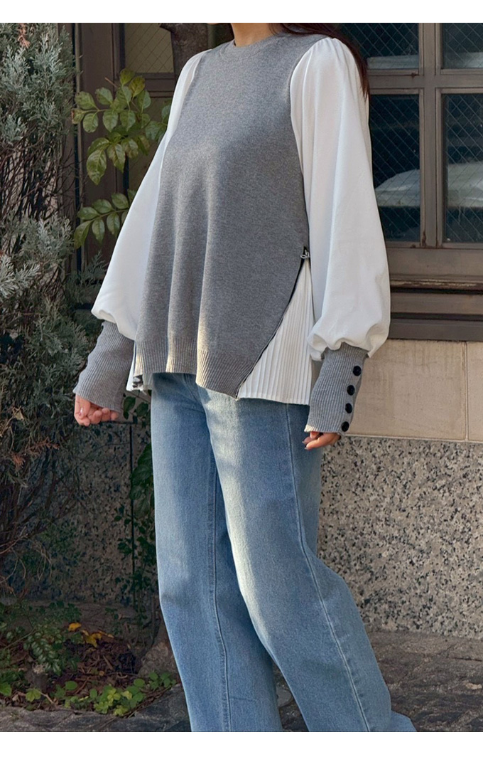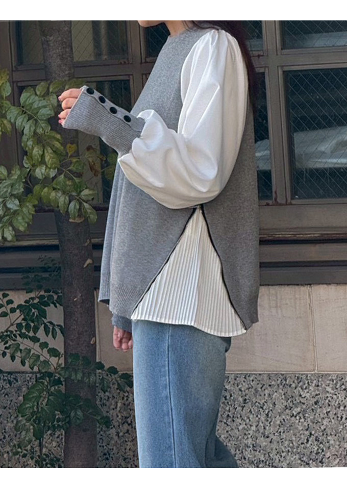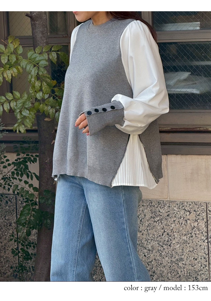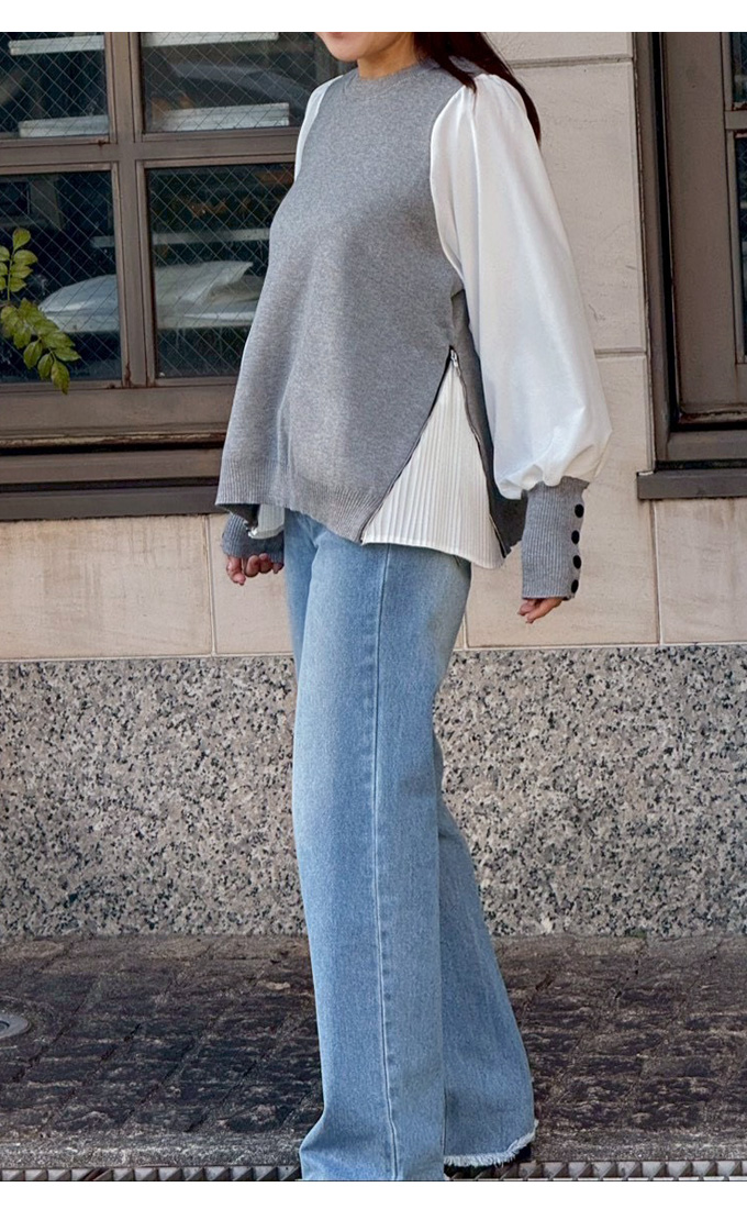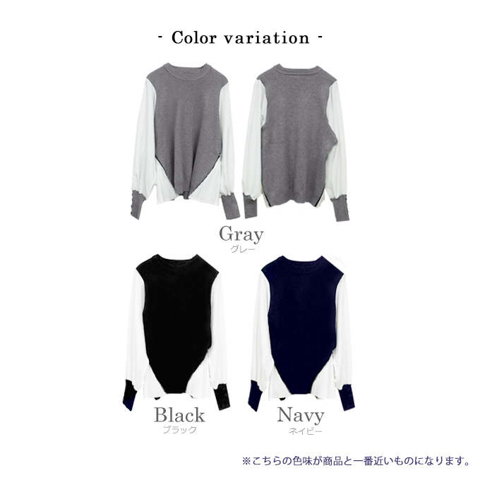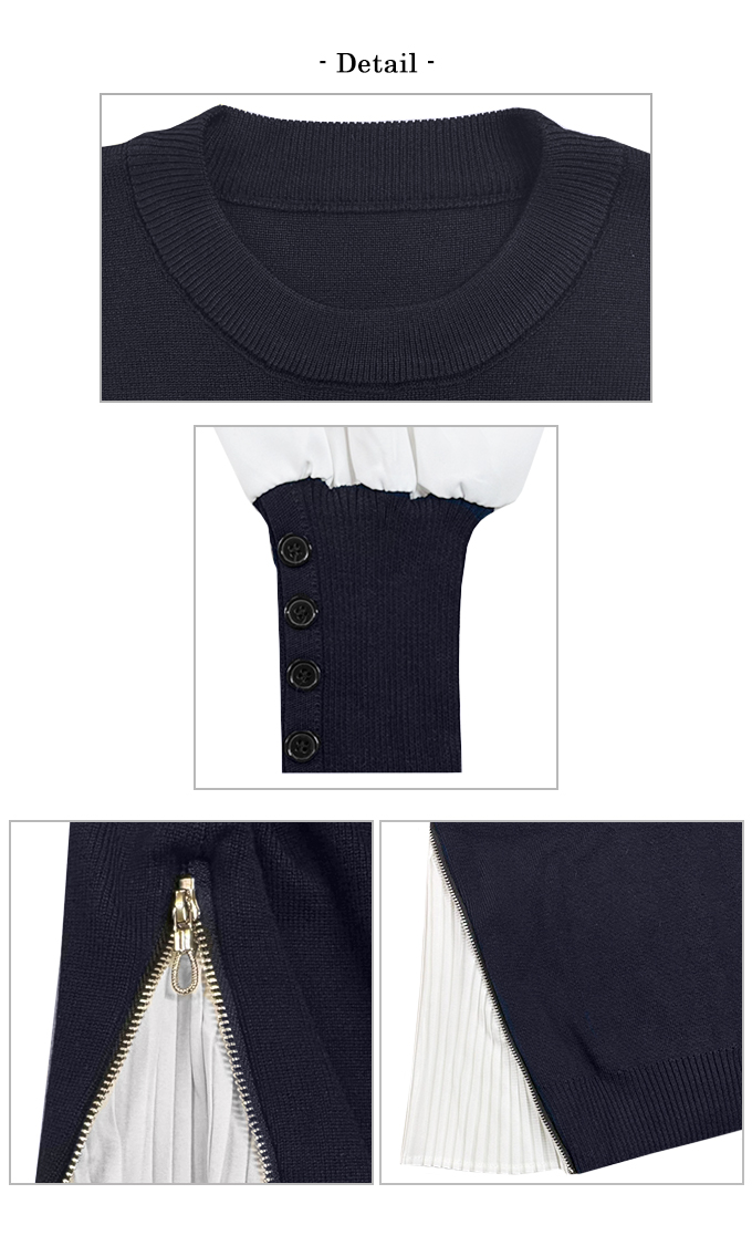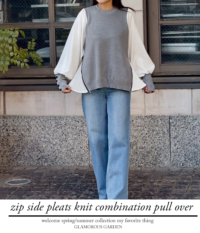 ZIPサイドプリーツニットコンビプルオーバー【7e-831-06155】