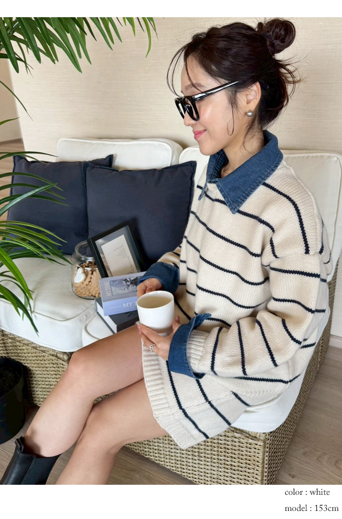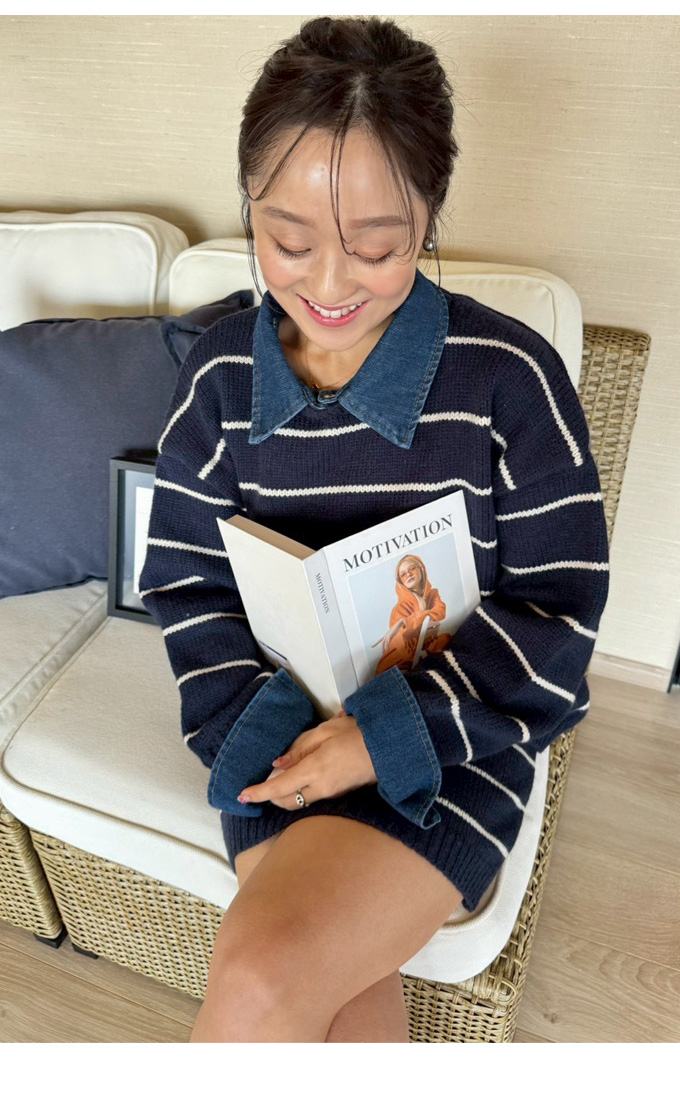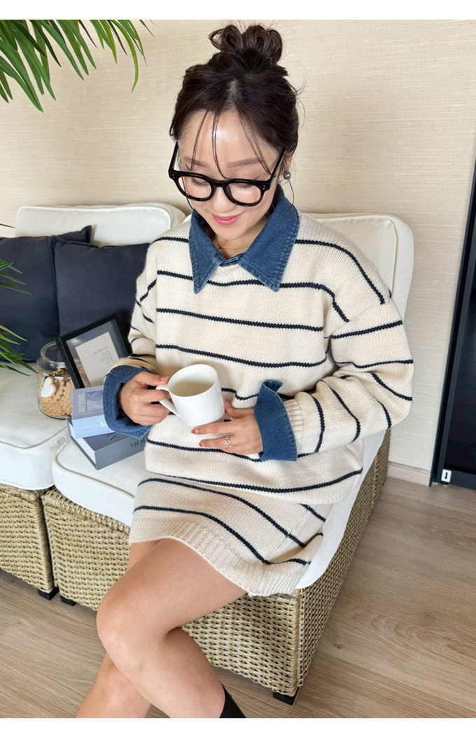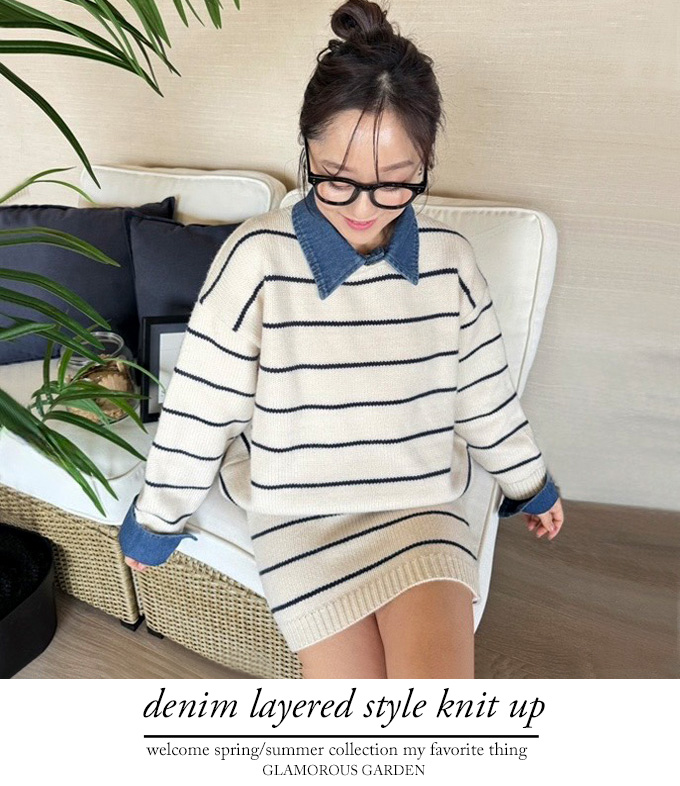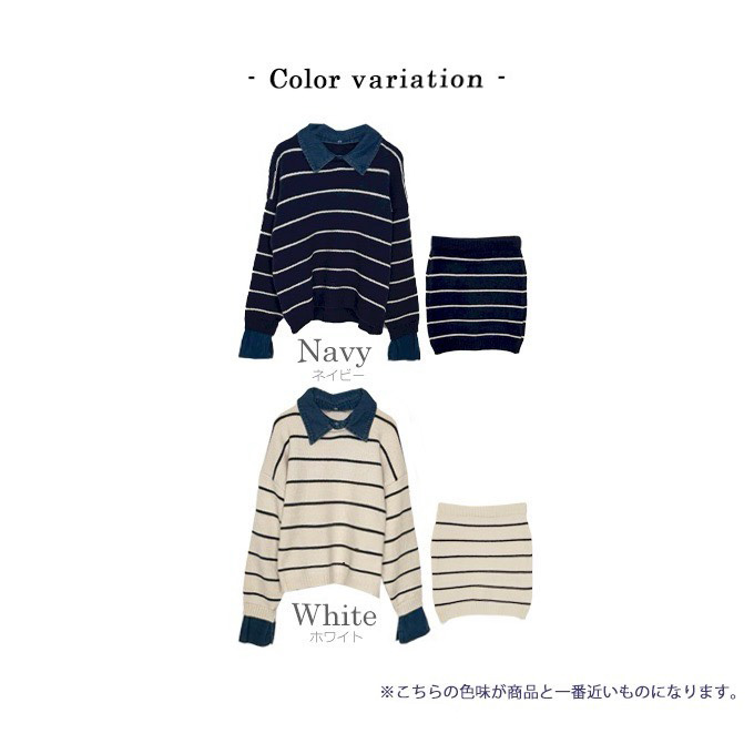 デニムレイヤード風ニットアップ【7e-831-06157】