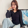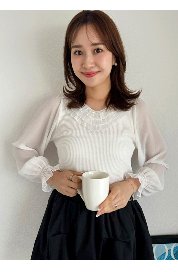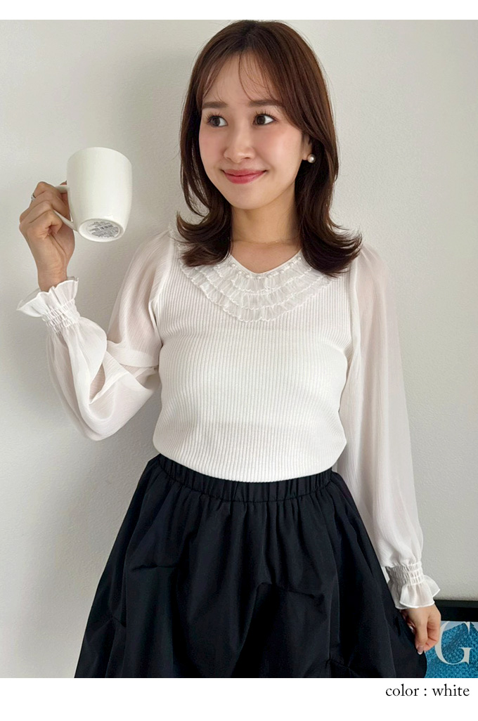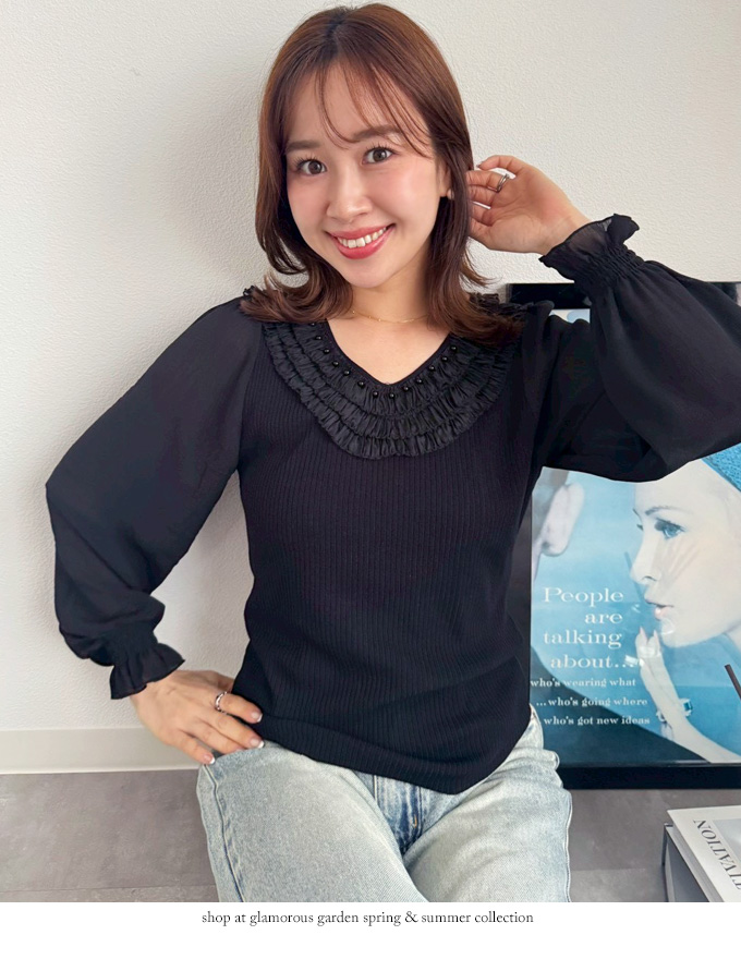 Vネックフリルデコニット【7e-831-06247】