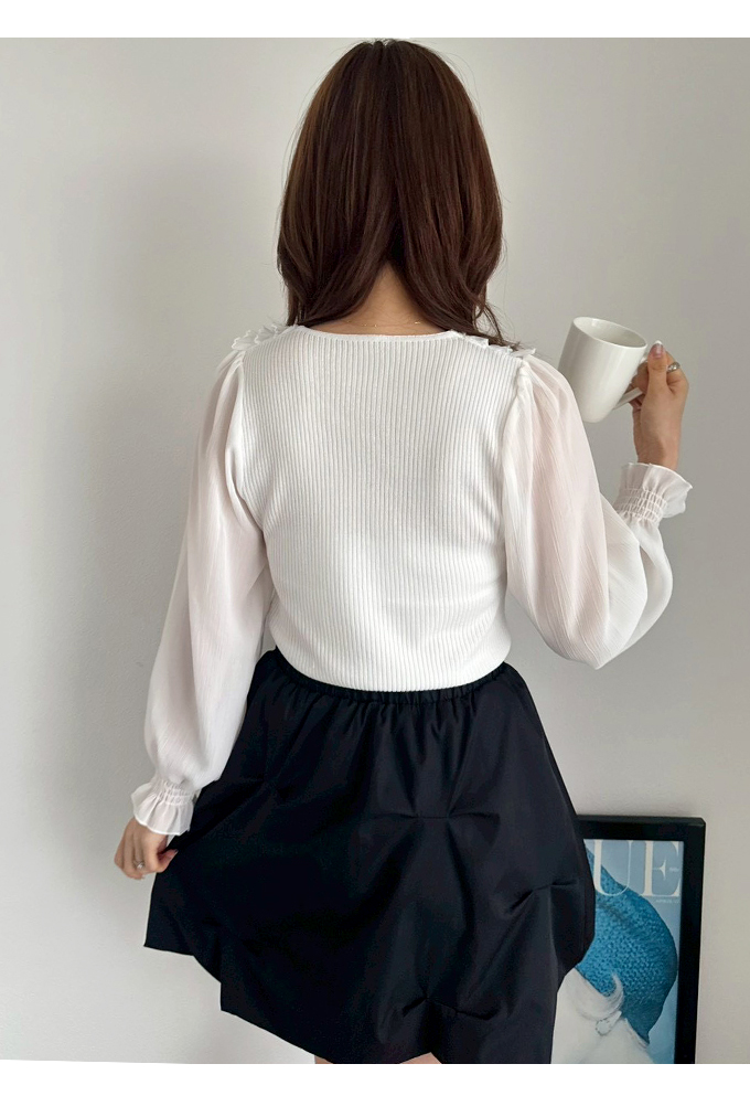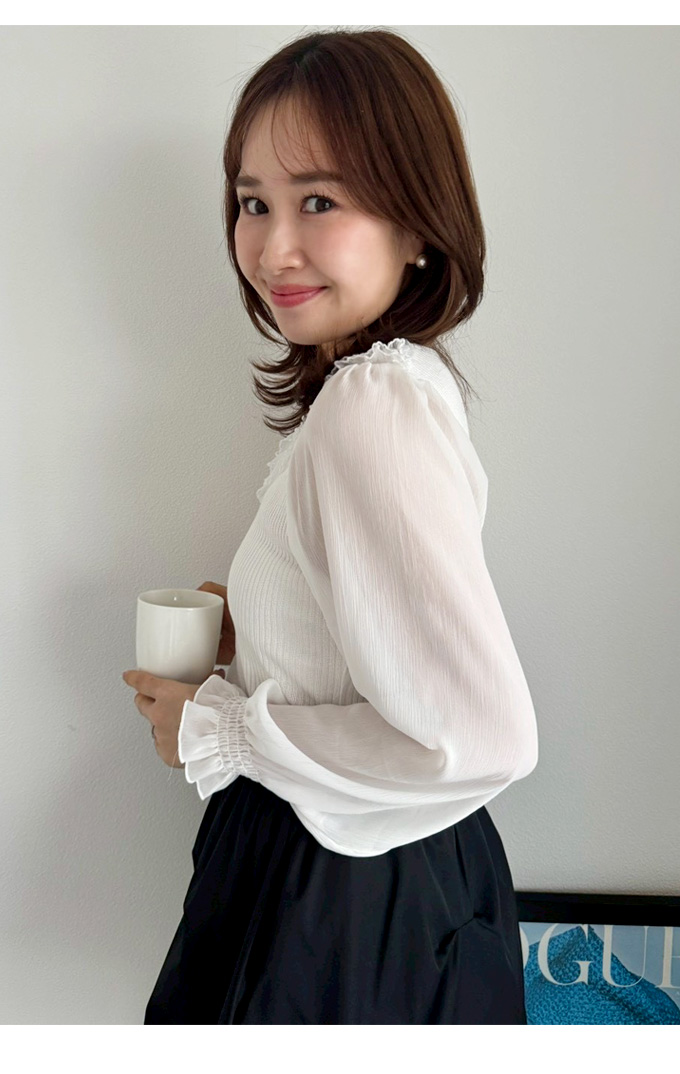 袖口シャーリング・ニット部分あり