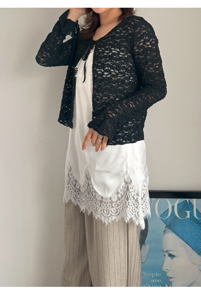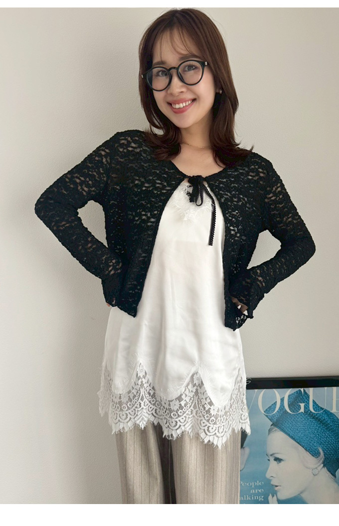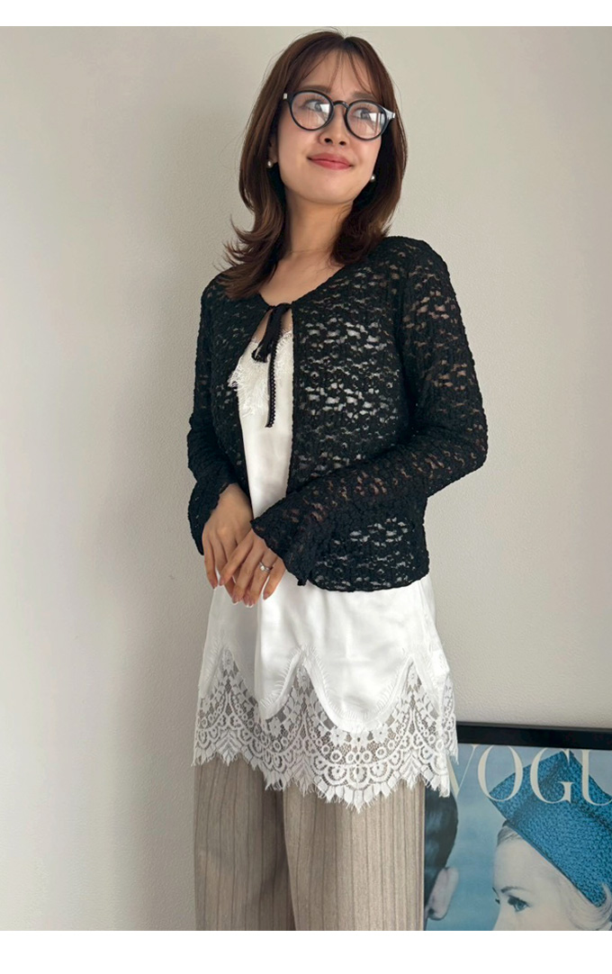 フロントリボンレースカーデ【ネコポスOK】【7e-831-06288】