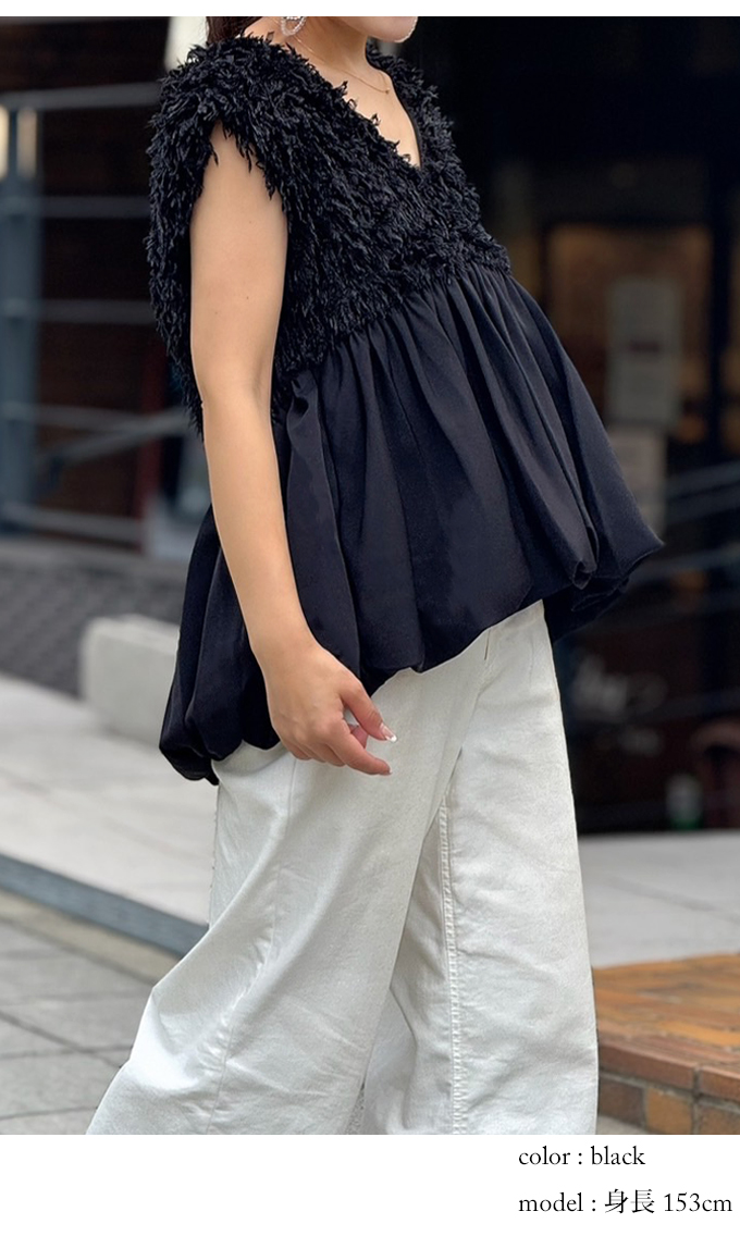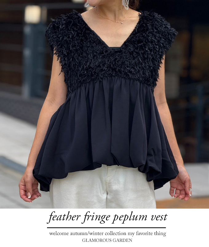 フェザーフリンジペプラムベスト【7f-831-05749】