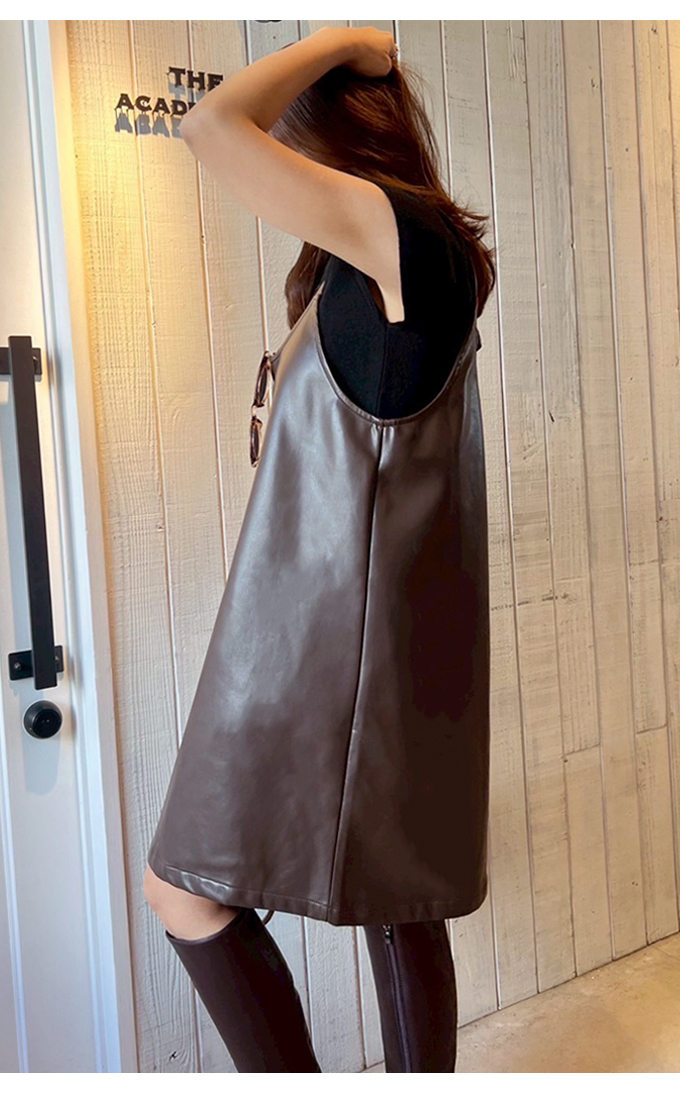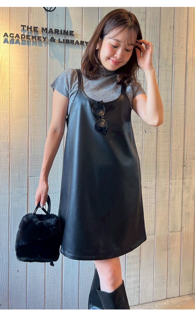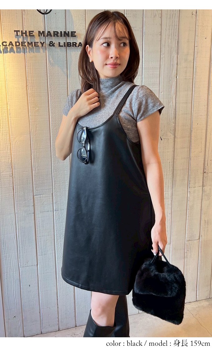 ニット&フェイクレザーキャミワンピセット【7f-831-05787】