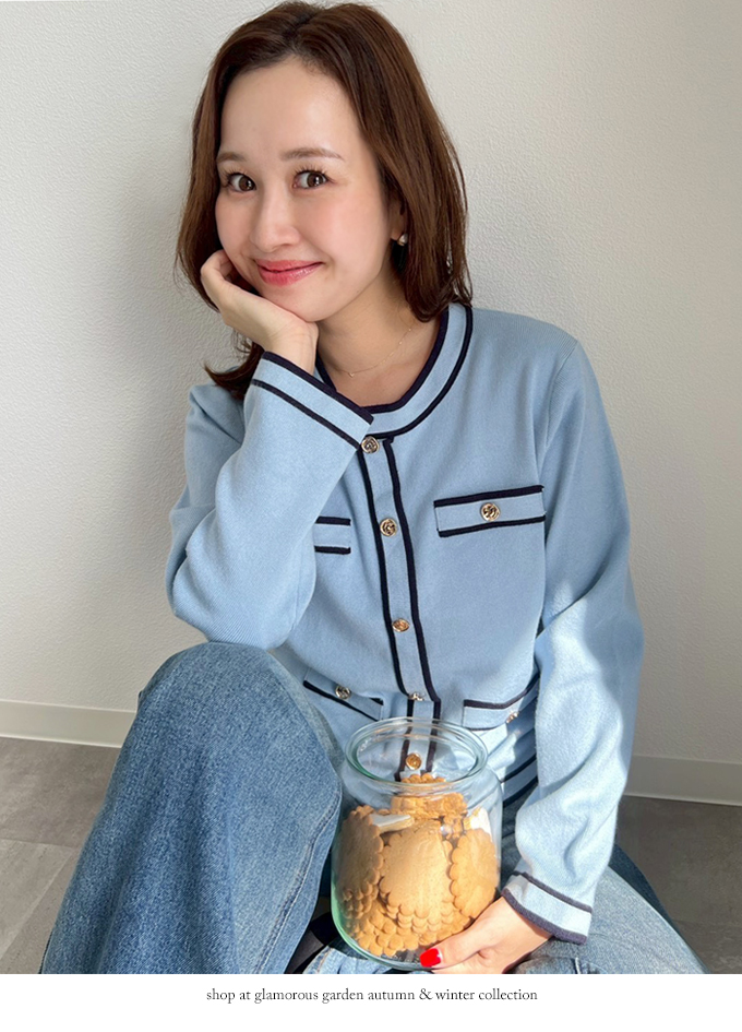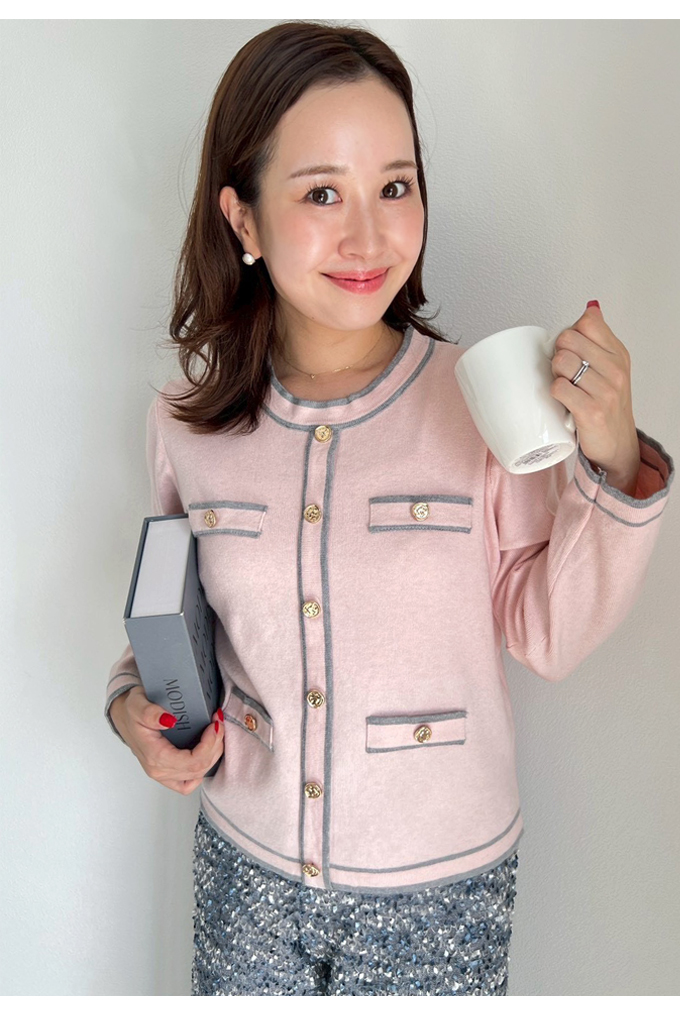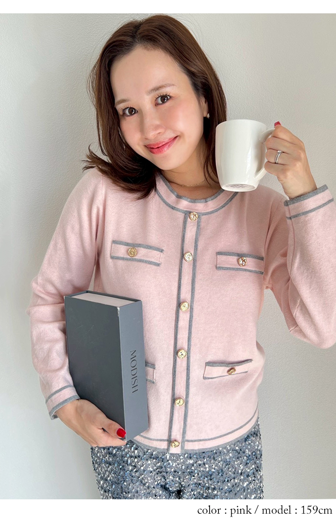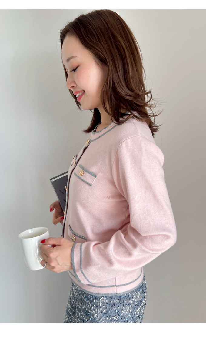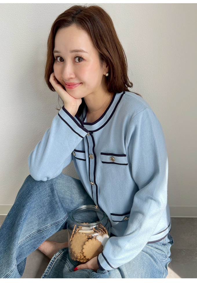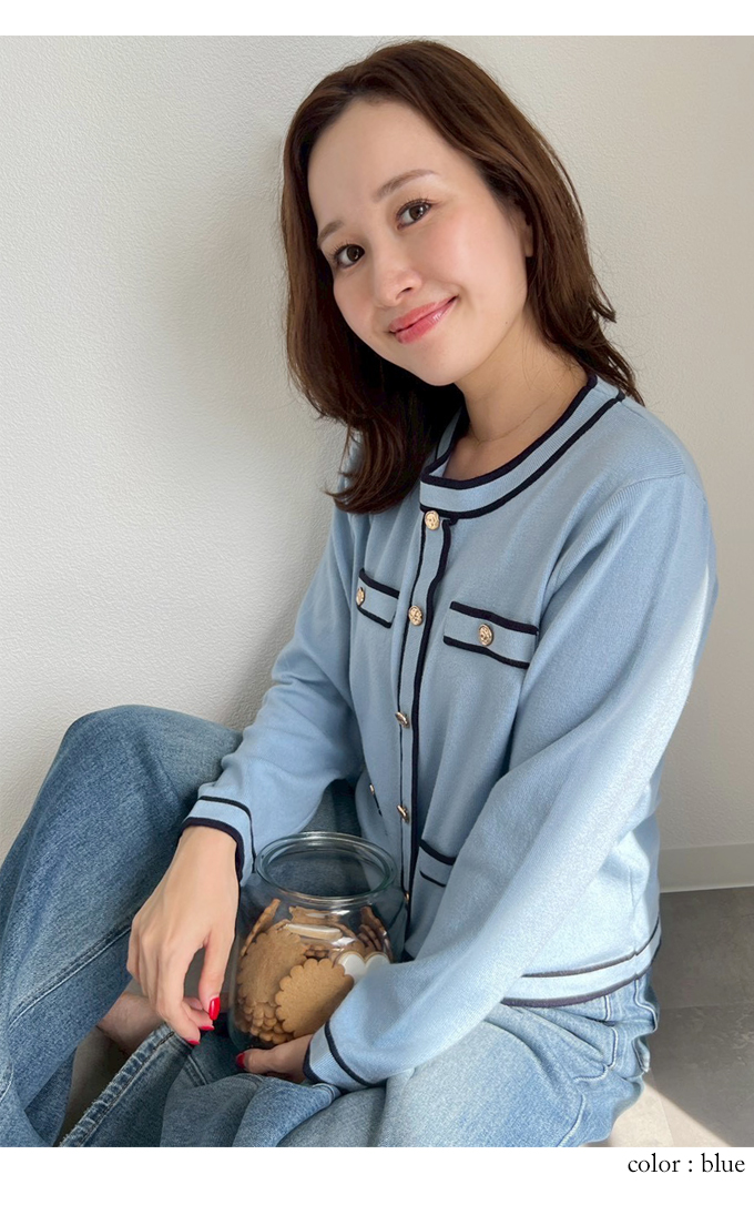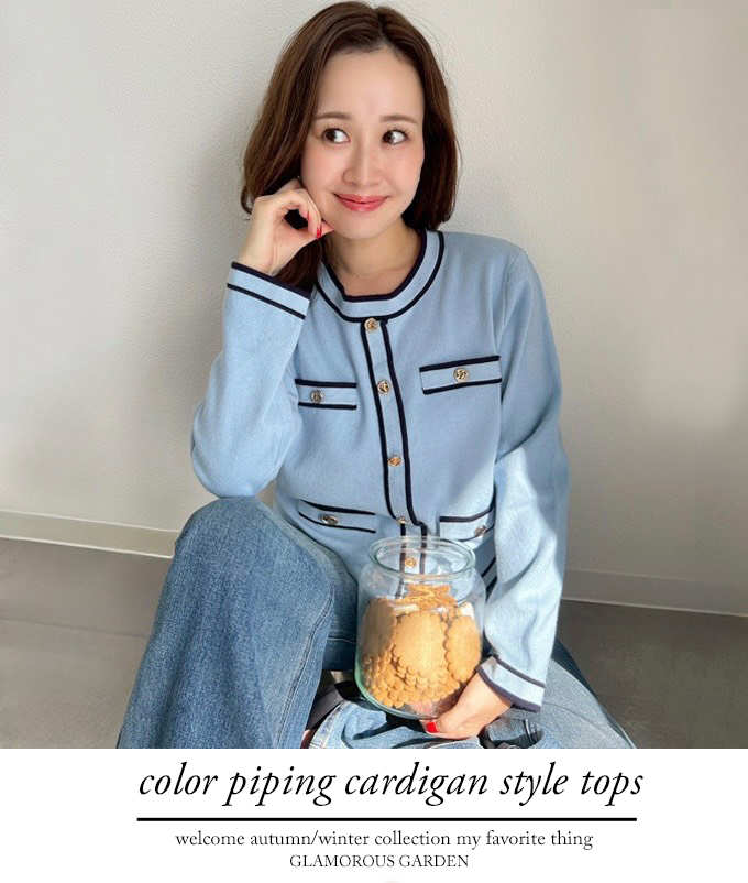 カラーパイピングカーデ風トップス【7f-831-05861】
