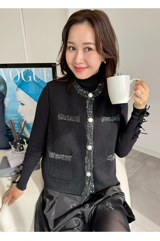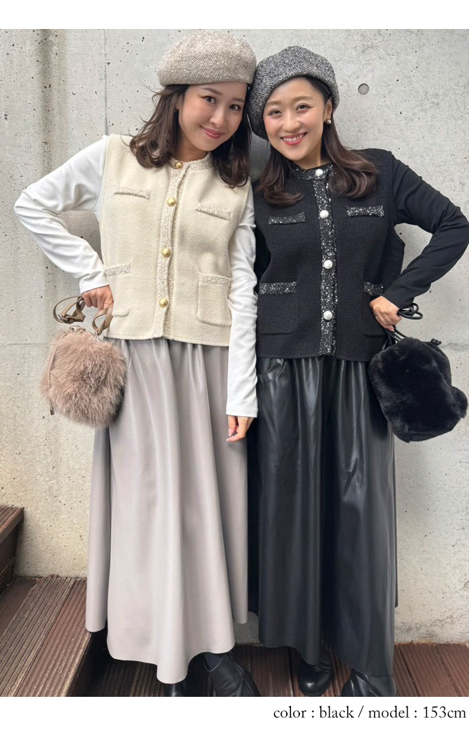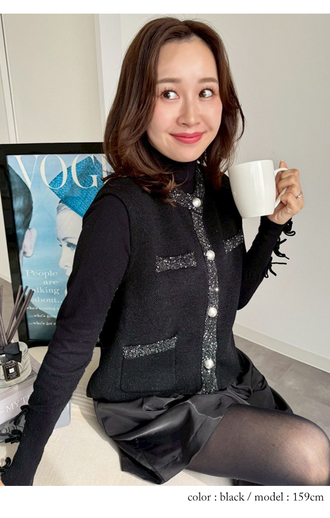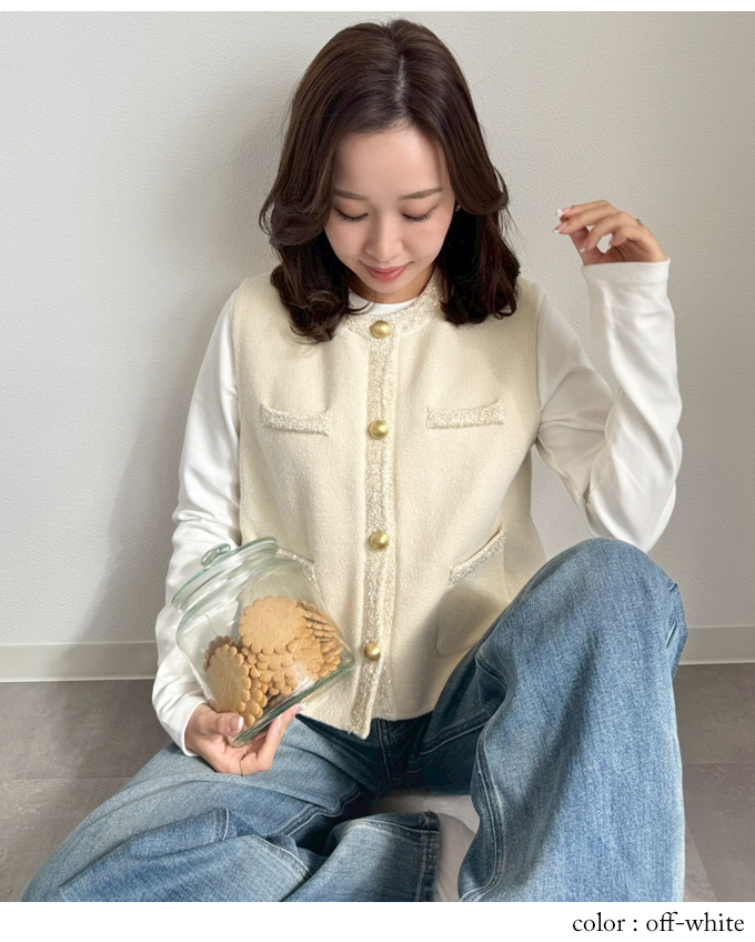 メタルボタンツイードライクニットベスト【7f-831-05880】