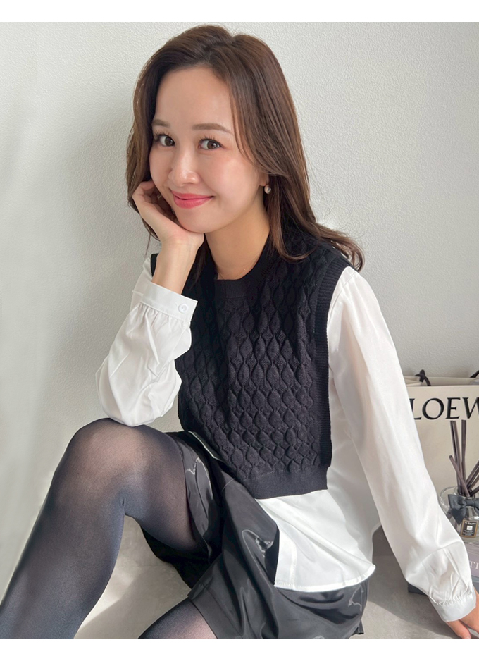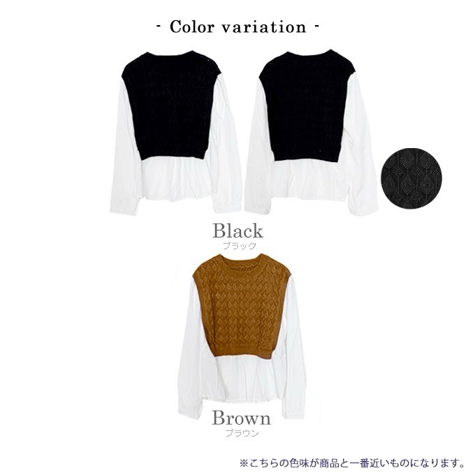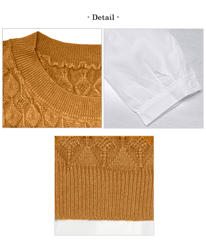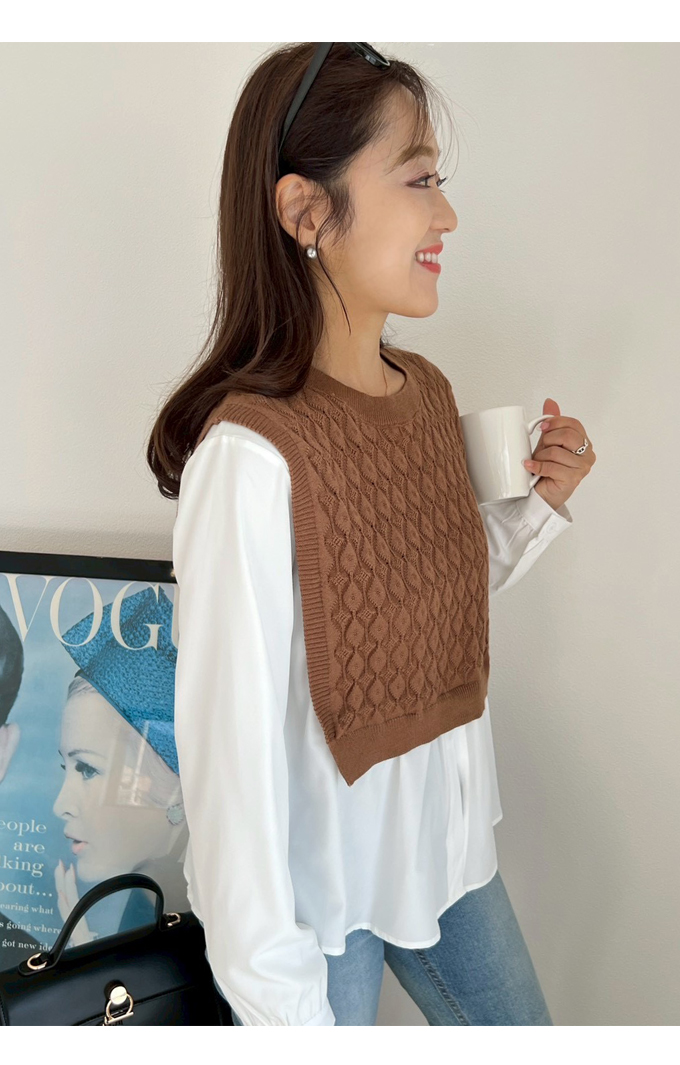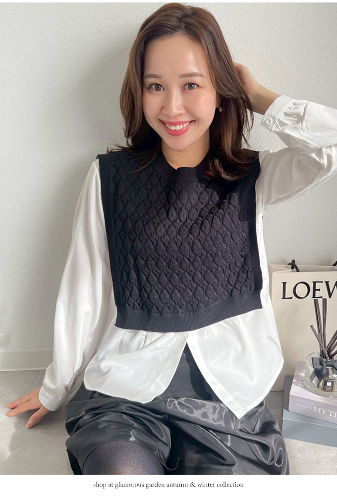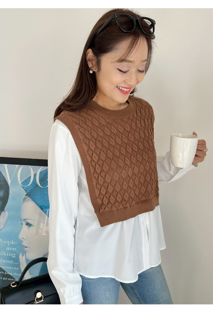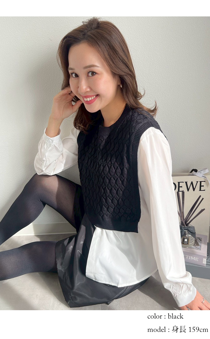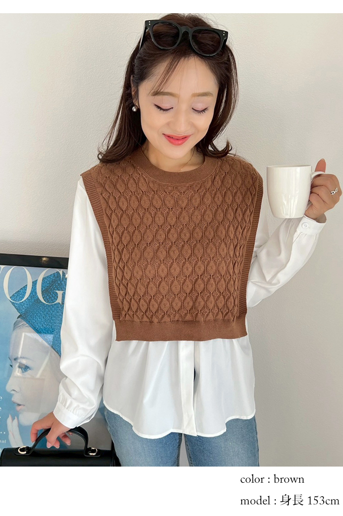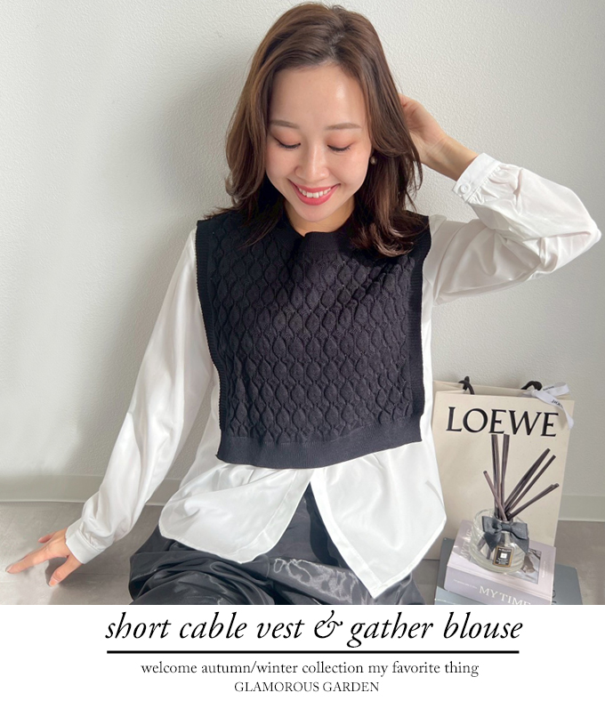 ショートケーブルベスト&ギャザーブラウス【ネコポスOK】【7f-831-05942】
