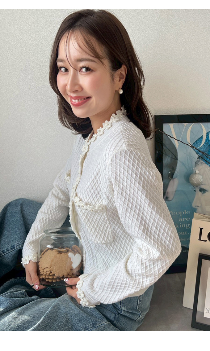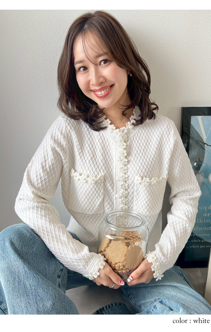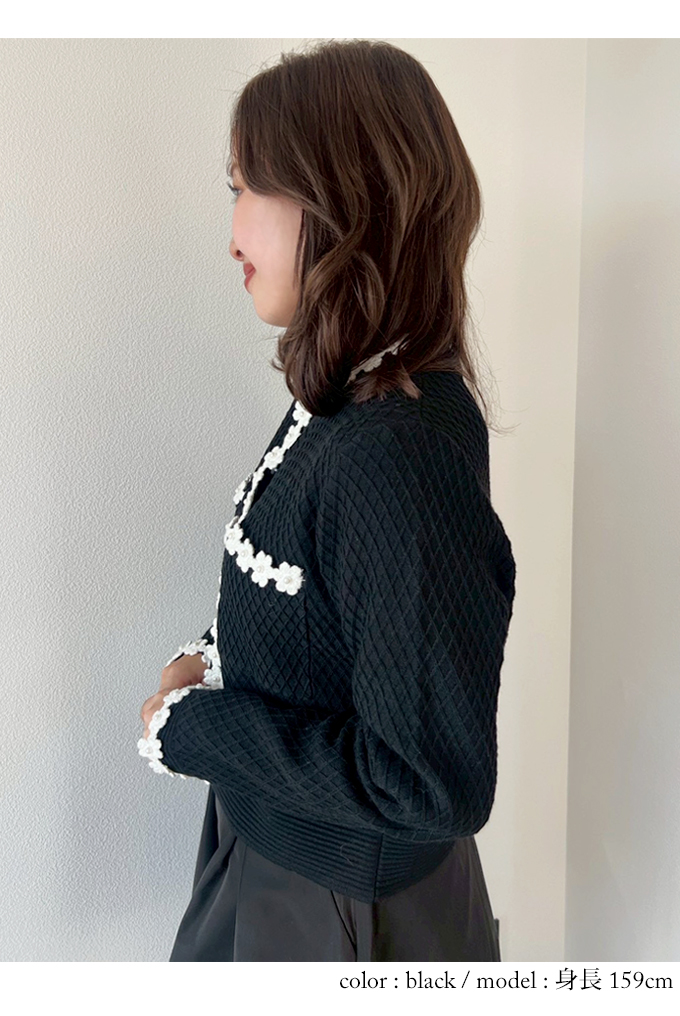 フラワートリムカーディガン【7f-831-05954】