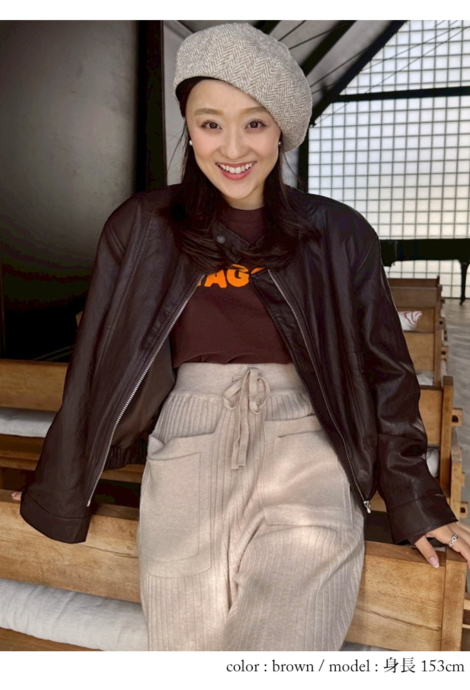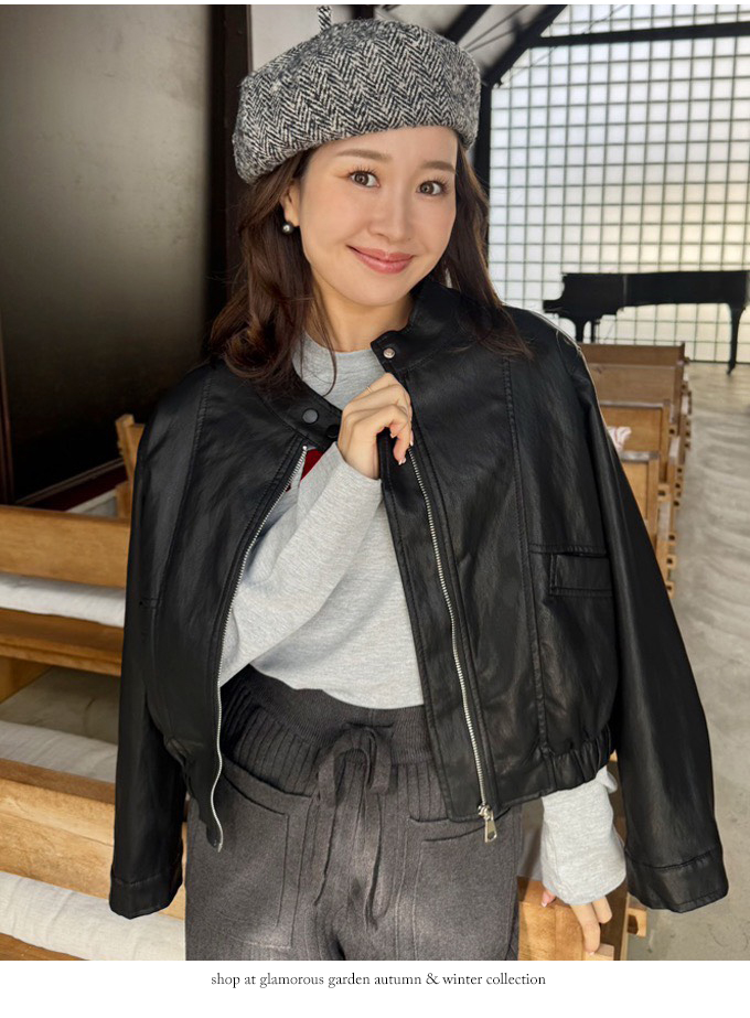 フェイクレザーブルゾン【7f-831-05963】