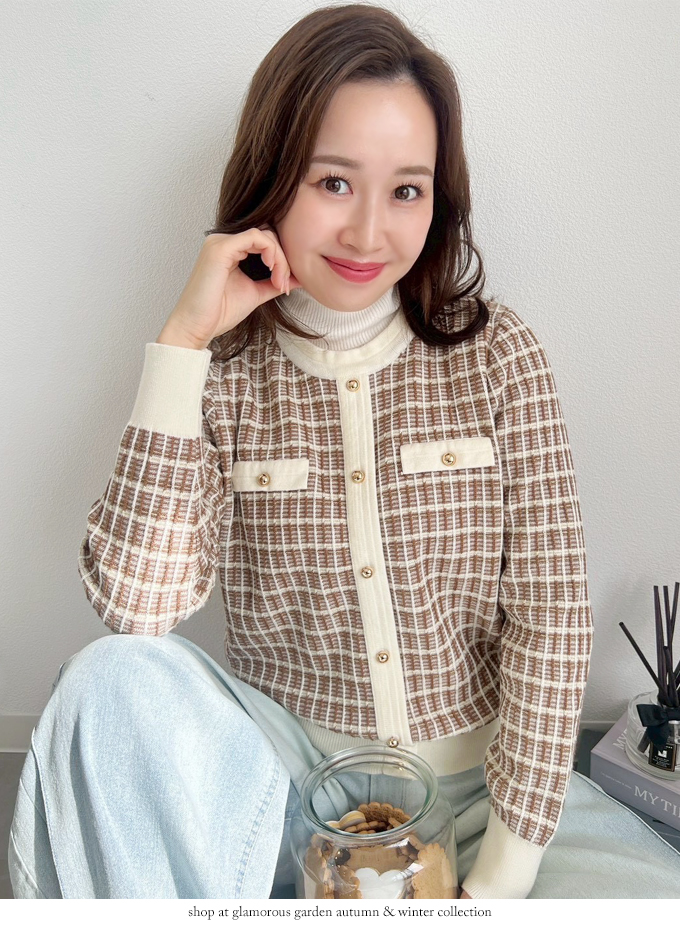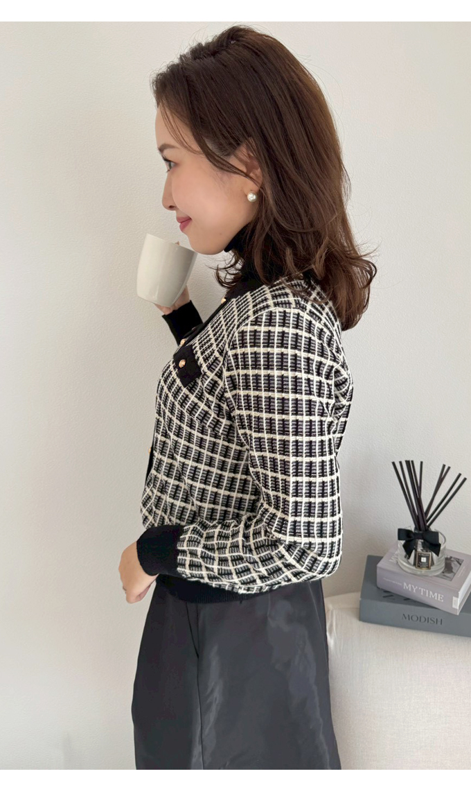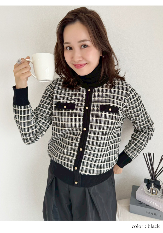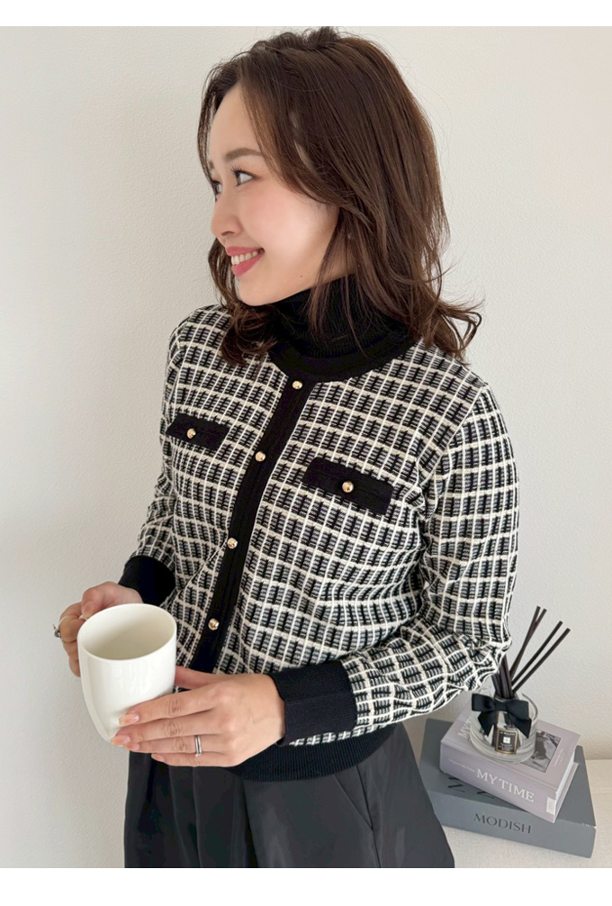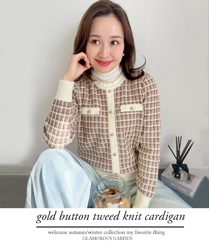 金ボタンツイードニットカーディガン風トップス【7f-831-05969】