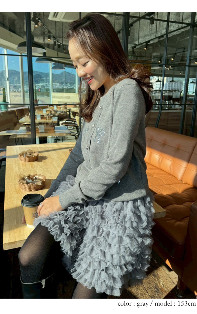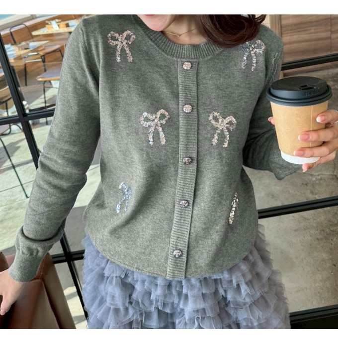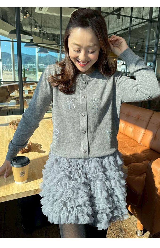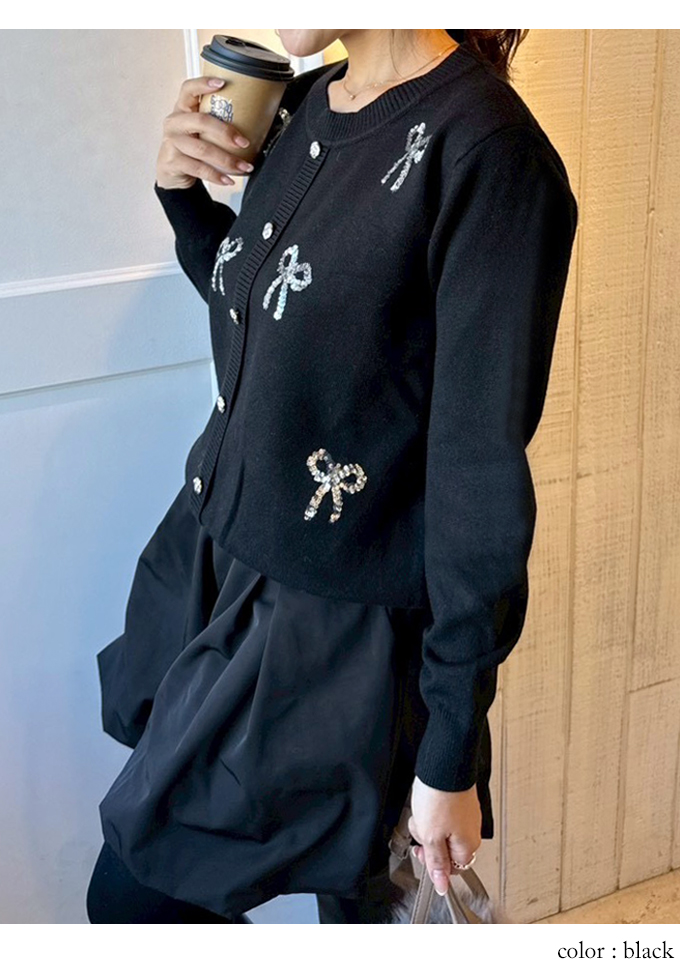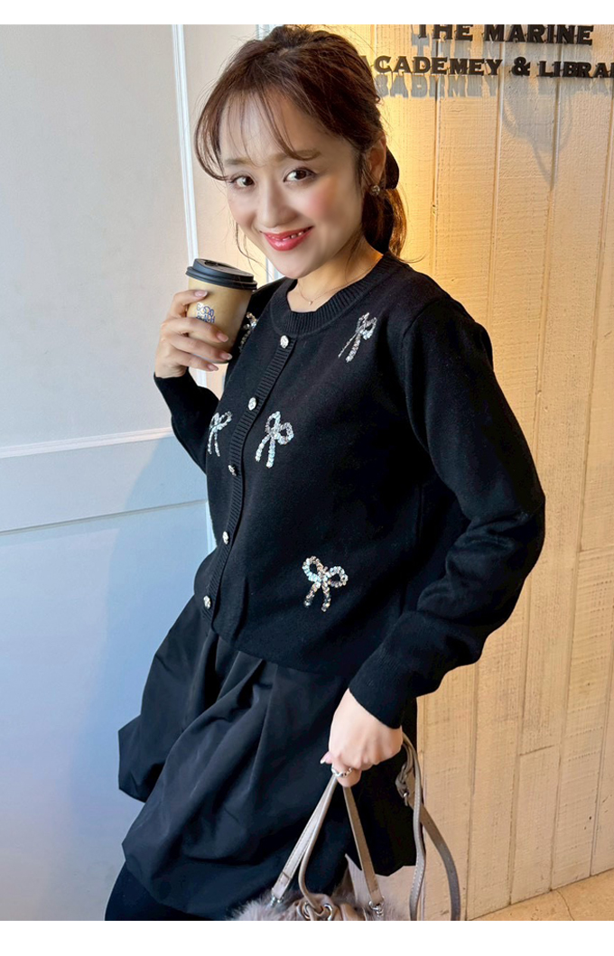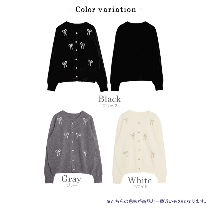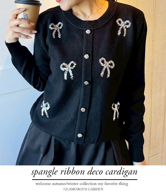 スパンコールリボンデコカーディガン【7f-831-05974】
