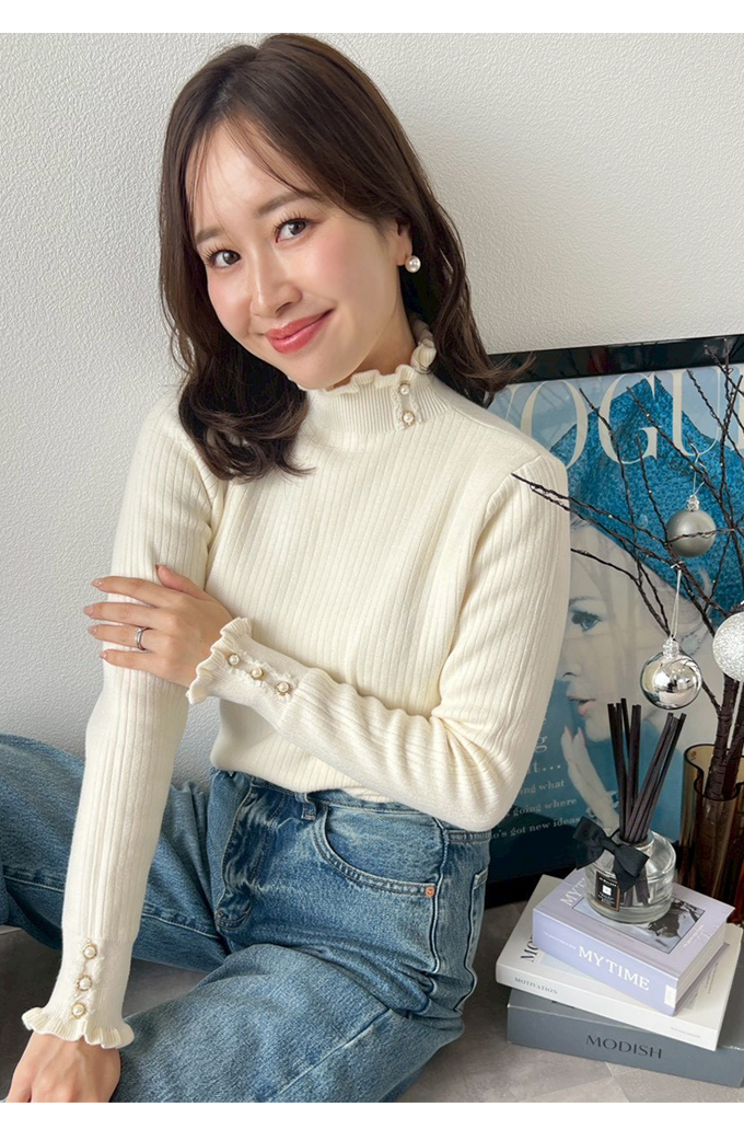 裏起毛フリルリブニット【7f-831-06023】