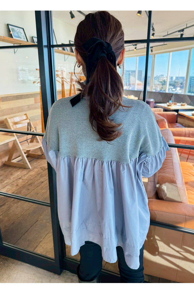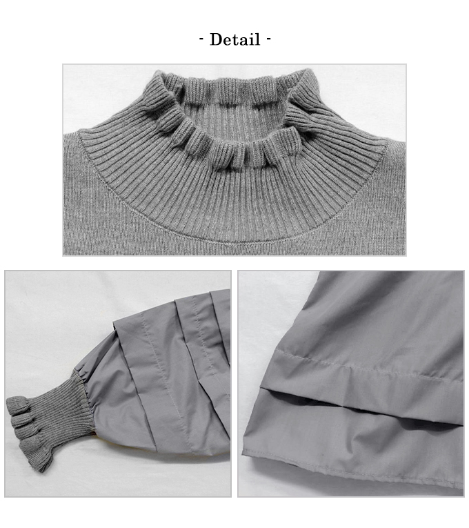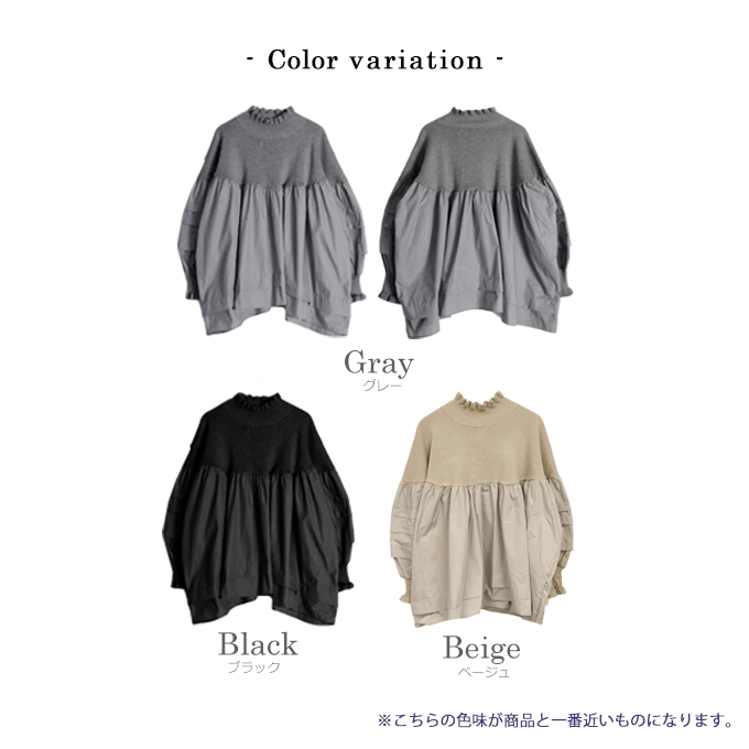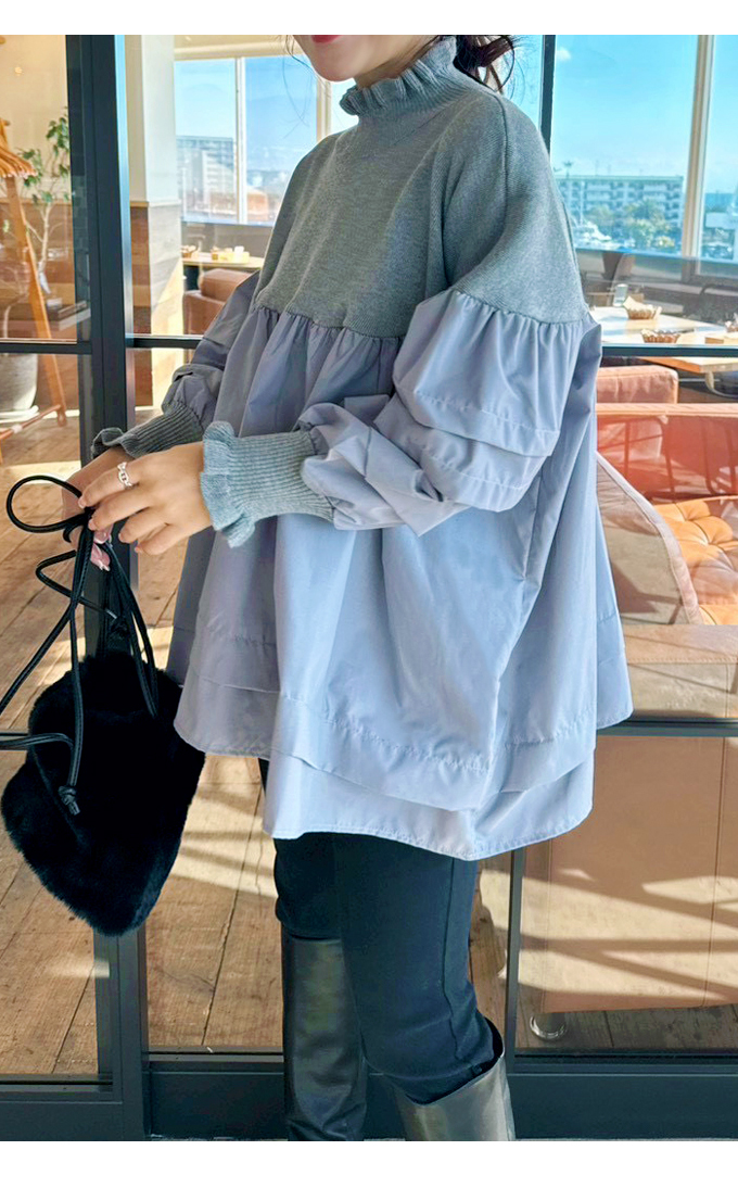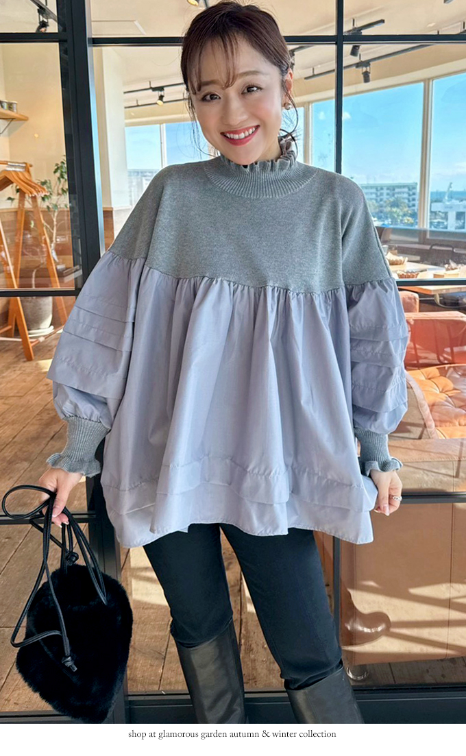 ハイネック異素材ドッキングブラウス【7f-831-06037】