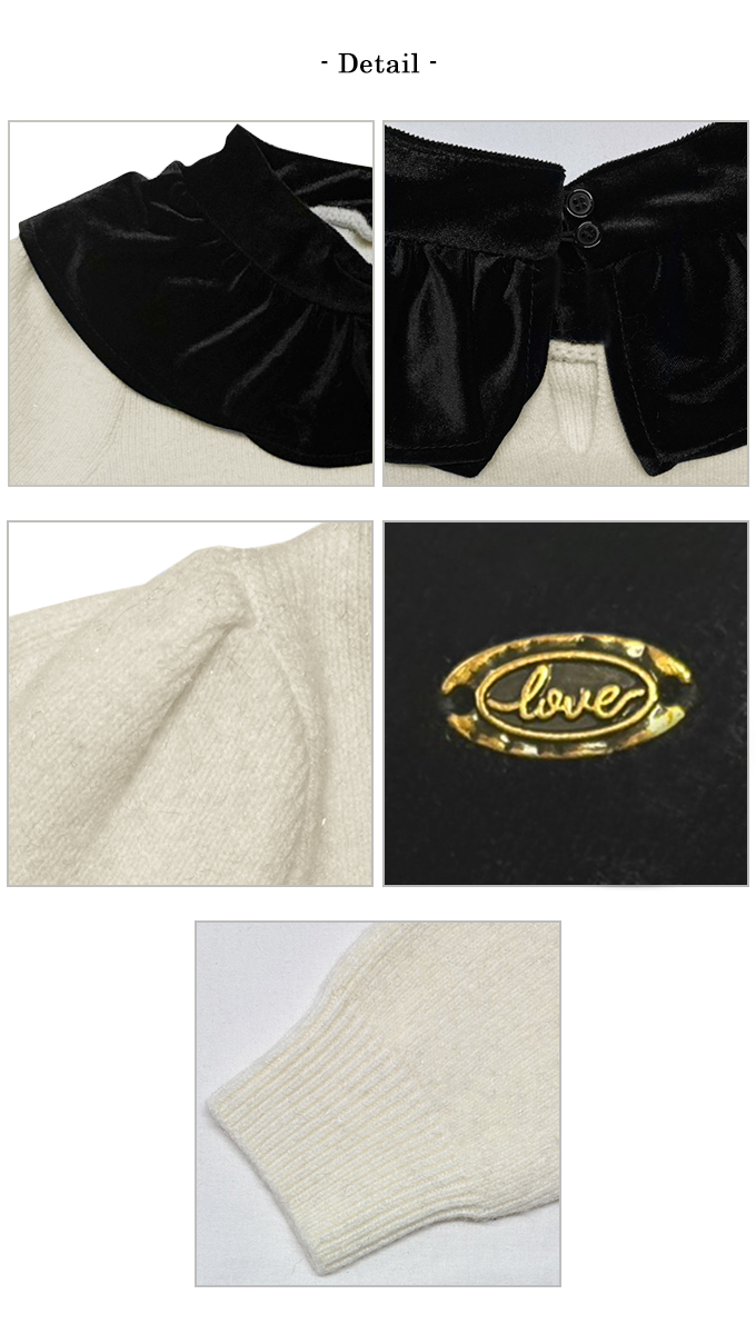 光沢感のあるベロアの襟を
