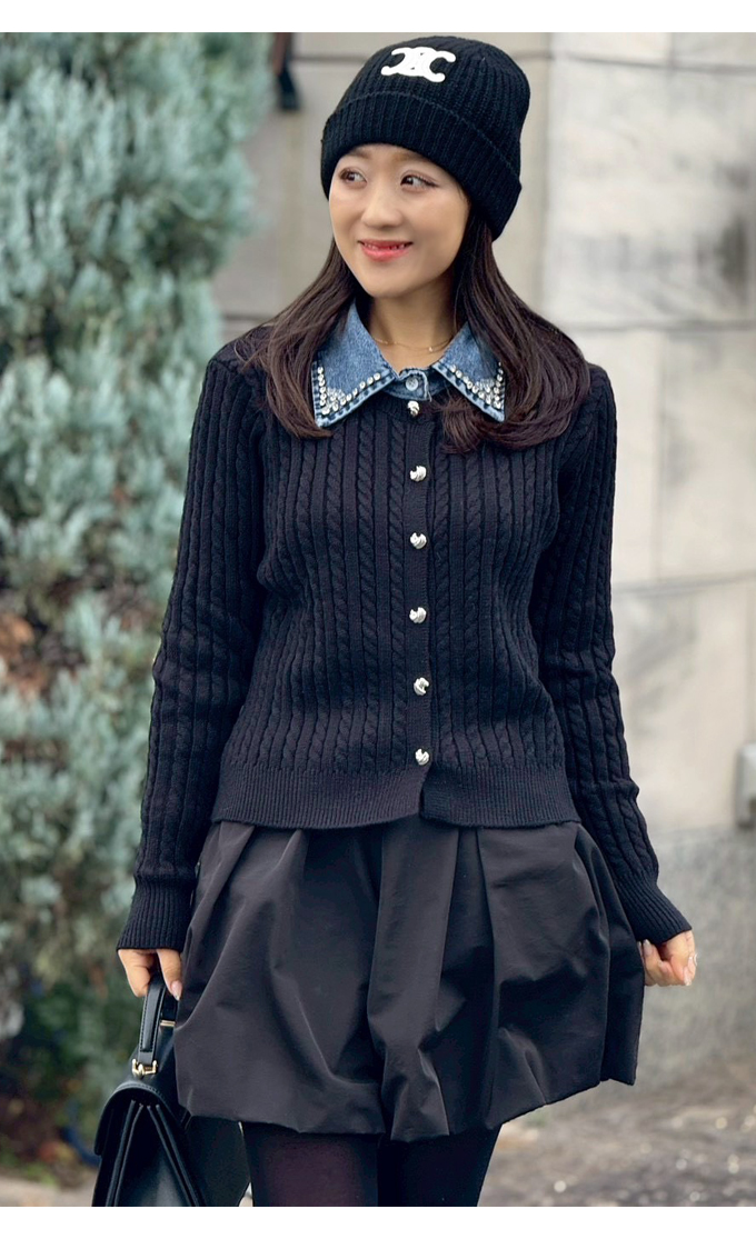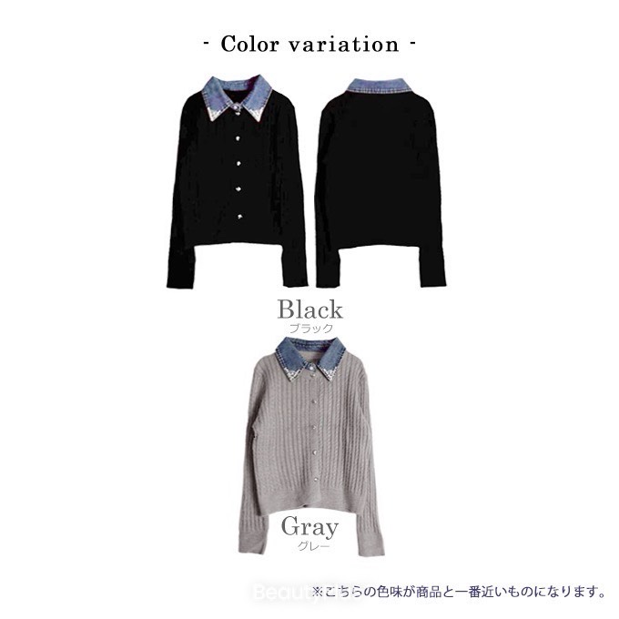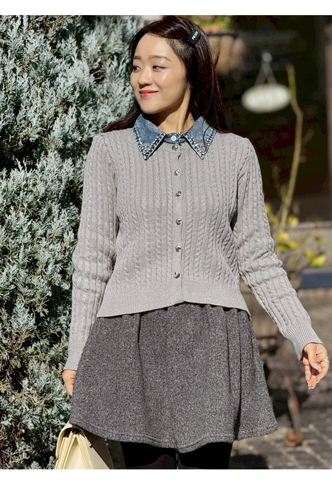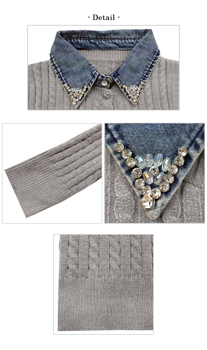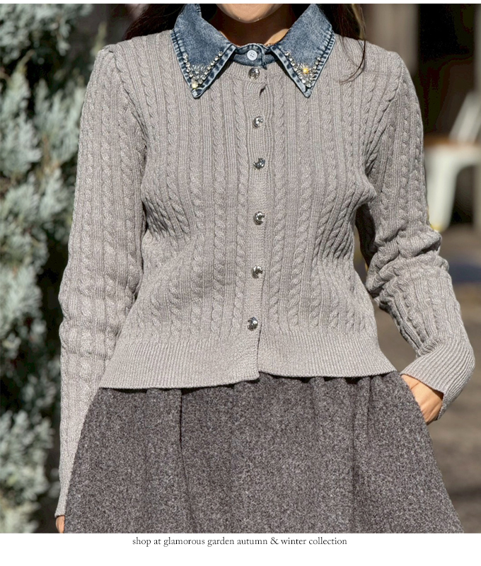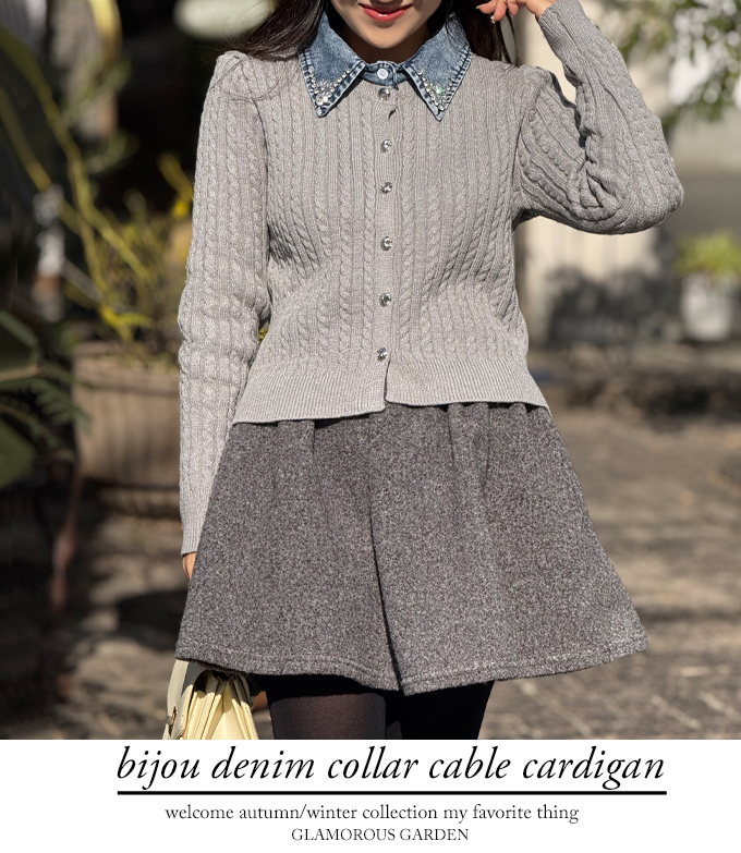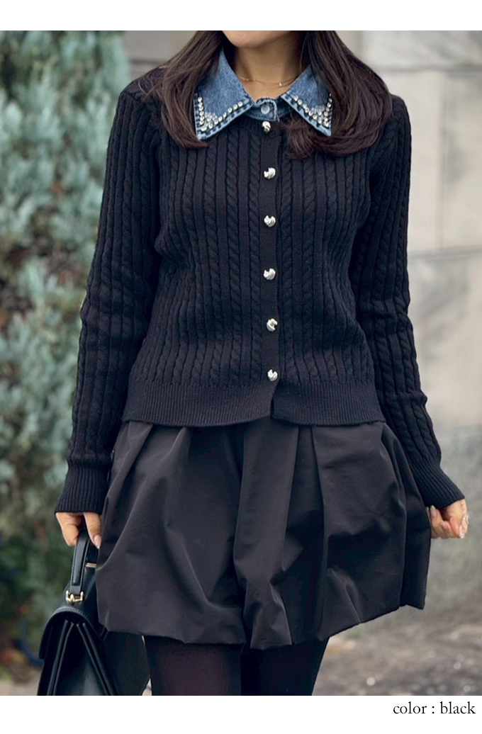 ビジューデニムカラーケーブルカーデ【7f-831-06087】