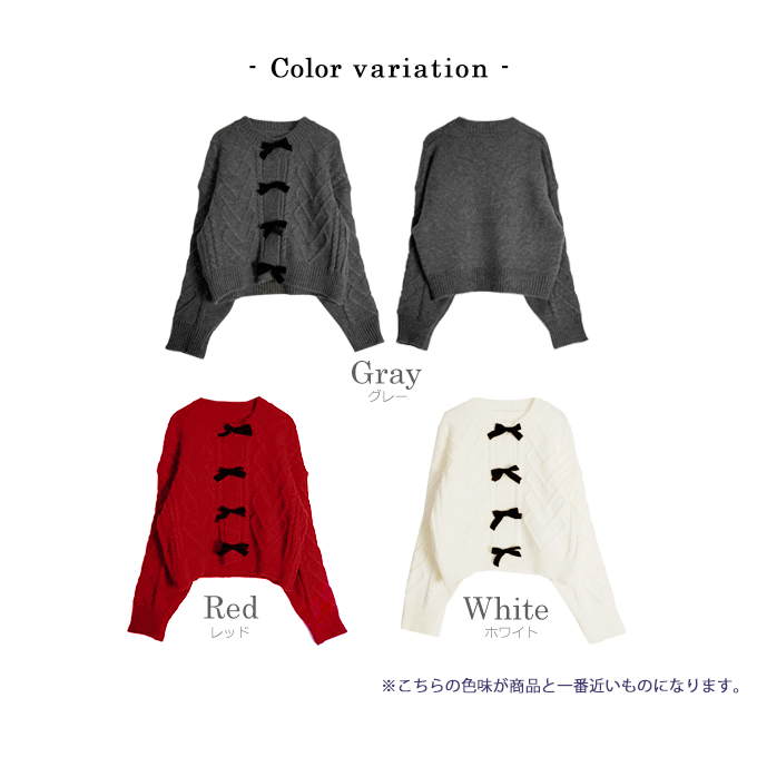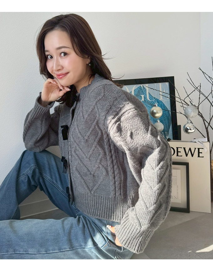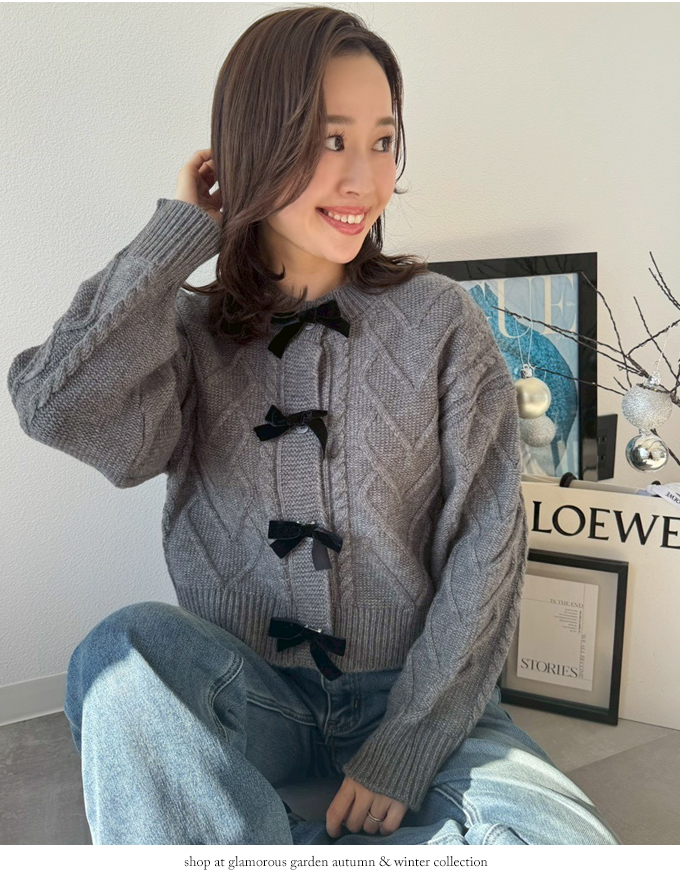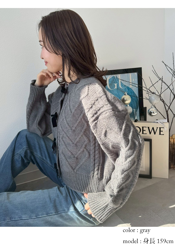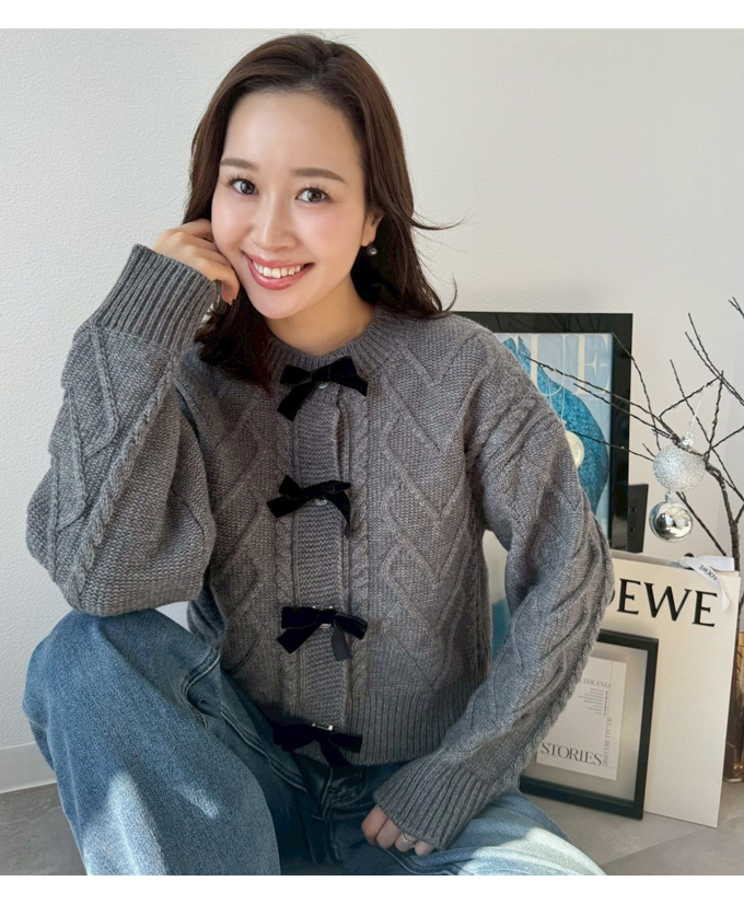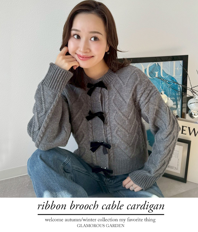 リボンブローチケーブルカーディガン【7f-831-06092】