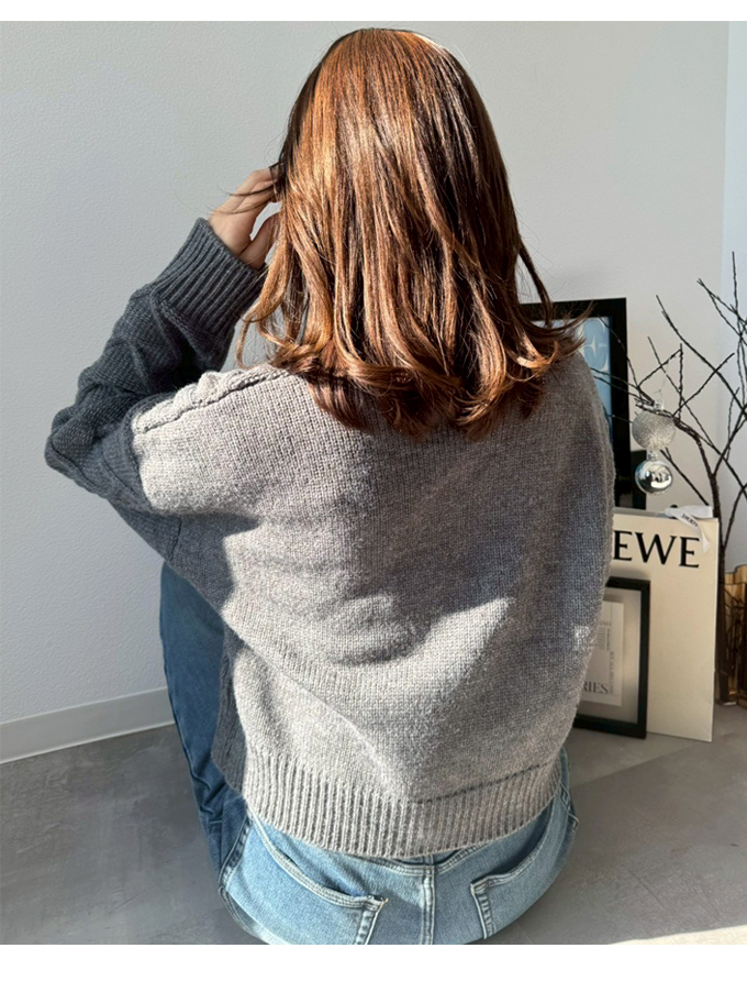 ケーブル編みのカーディガン