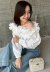 肩幅:約37cm(フリル部分含む)、バスト:約91cm、袖丈:約55cm、着丈:約54cm (フリル部分含む)