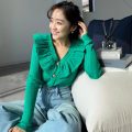ラッフルデザインVネックカーディガン【7h-831-05039】