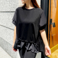 ギャザーデザイン異素材切り替えチュニック【ネコポスOK】【8c-831-02629】