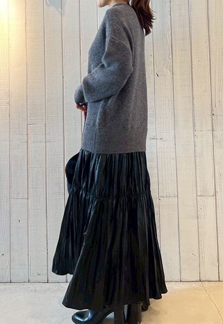 | 【表記サイズ】 F (フリー) 肩幅:約58.5cm バスト:約107cm 袖丈:約48cm 着丈:約126cm ※平置き採寸の為若干のブレがございます。 |