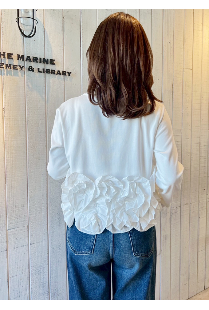 | 【表記サイズ】 F (フリー) 肩幅:約44cm バスト:約98cm 袖丈:約57cm 着丈:約53cm ※平置き採寸の為若干のブレがございます。 |