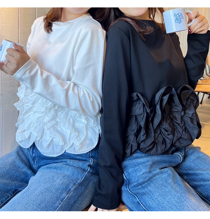 | ホワイト着用モデルはayane 身長159cm ブラック着用モデルはyuyu 身長153cm |