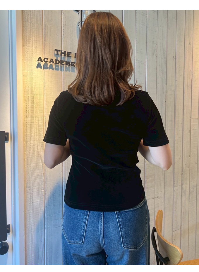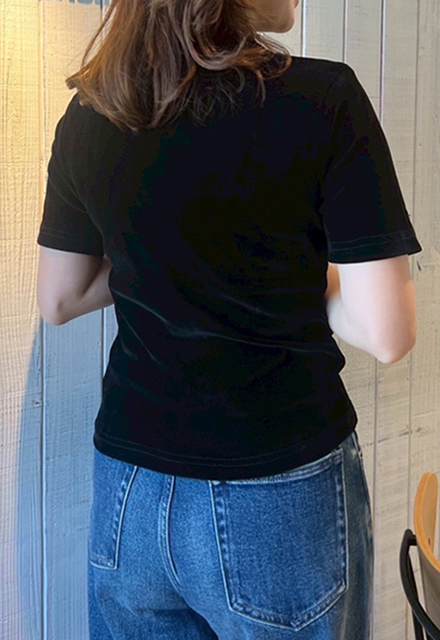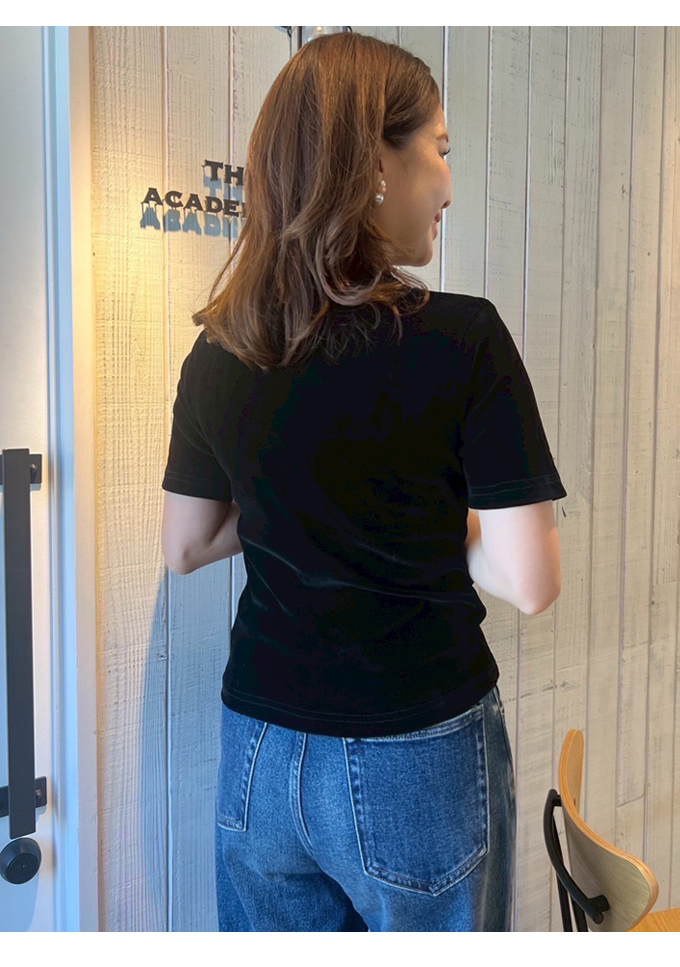| 【表記サイズ】 F (フリー) 肩幅:約38cm バスト:約78cm 袖丈:約22cm 着丈:約53.5cm ※平置き採寸の為若干のブレがございます。 |