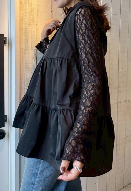 | 【表記サイズ】 F (フリー) 肩幅:約40.5cm バスト:約101cm 着丈:約65cm ※平置き採寸の為若干のブレがございます。 |
