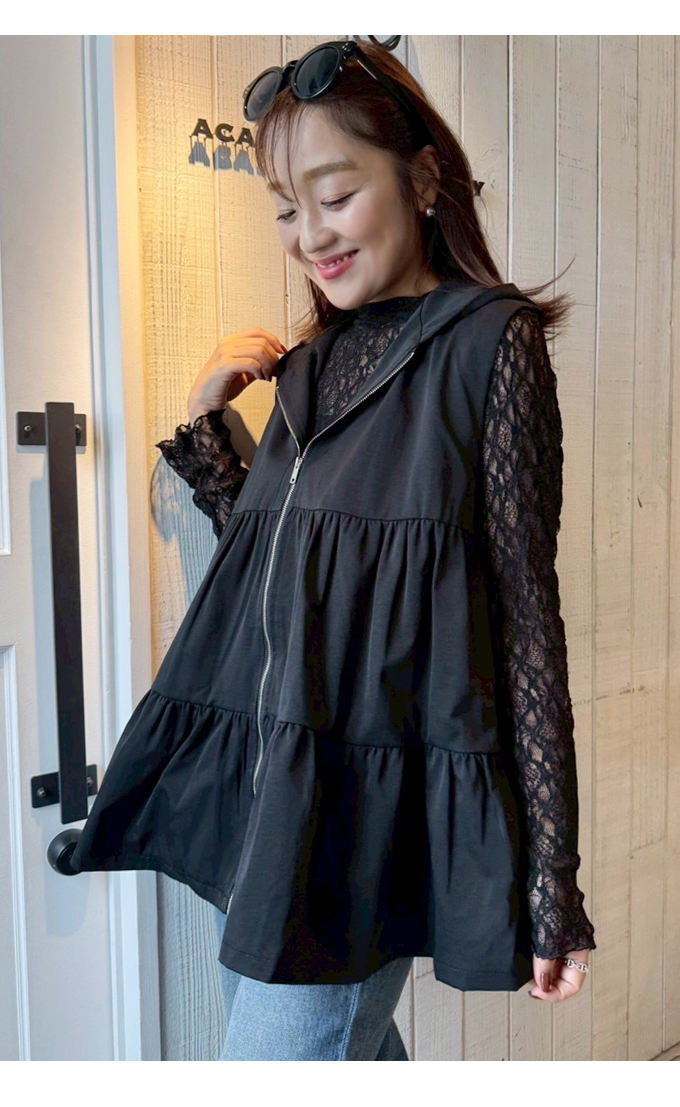 | ベージュ着用モデルはayane 身長159cm ブラック着用モデルはyuyu 身長153cm |