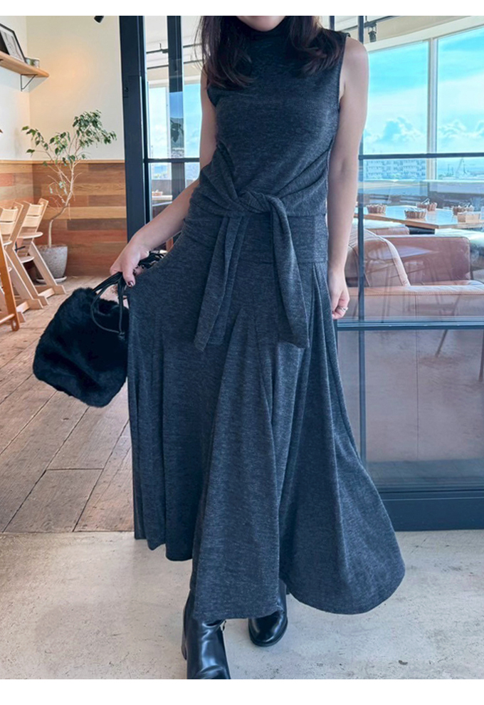 | 【表記サイズ】 F (フリー) 【トップス】 肩幅:約35cm バスト:約71cm 着丈:約61cm 【スカート】 ウエスト(ゴム):約58cm ヒップ:約110cm 総丈:約75.5cm ※平置き採寸の為若干のブレがございます。 |