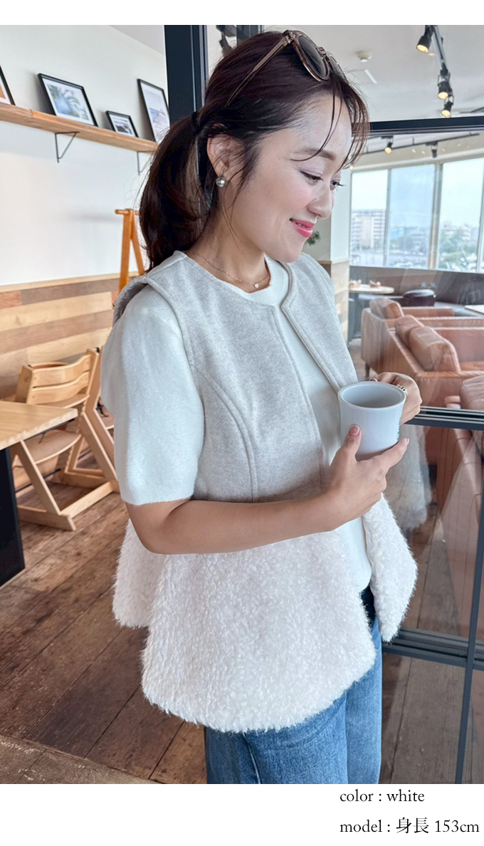 | 【表記サイズ】 F (フリー) 肩幅:約34.5cm バスト:約90cm 着丈:約60cm ※平置き採寸の為若干のブレがございます。 |