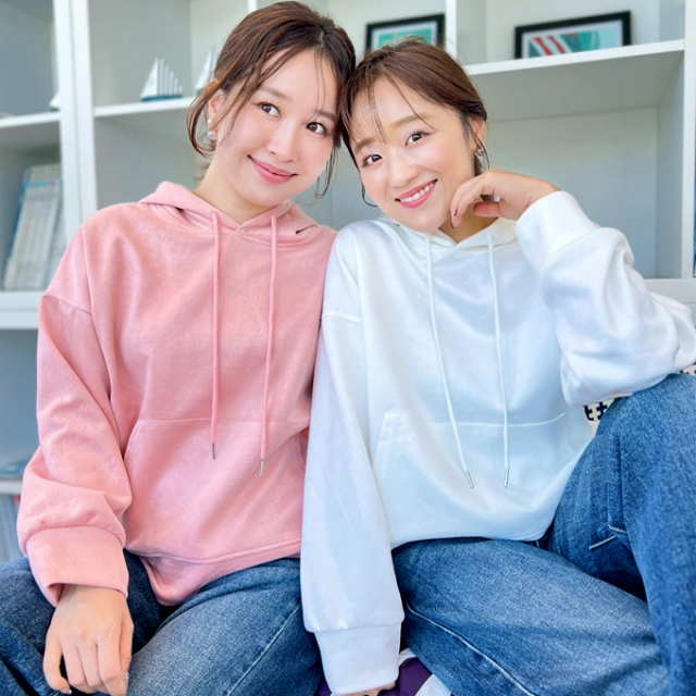 | ピンク着用モデルはayane身長159cm ホワイト着用モデルはyuyu身長153cm |
