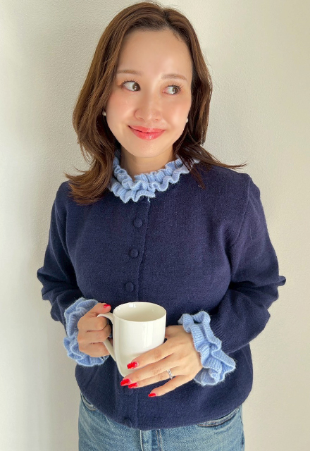 | 【表記サイズ】 F (フリー) 肩幅:約42cm バスト:約105cm 袖丈(フリル含む):約60cm 着丈:約55.5cm ※平置き採寸の為若干のブレがございます。 |