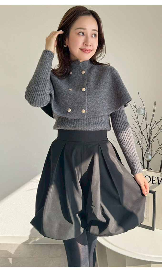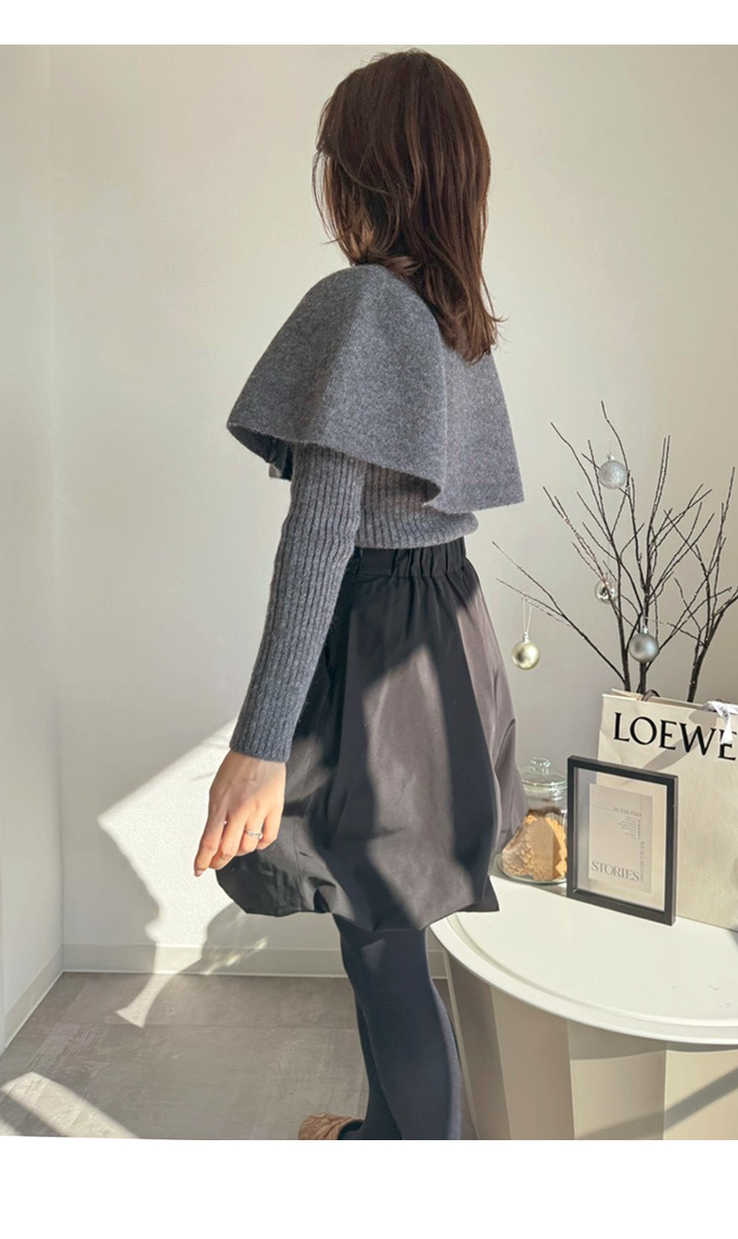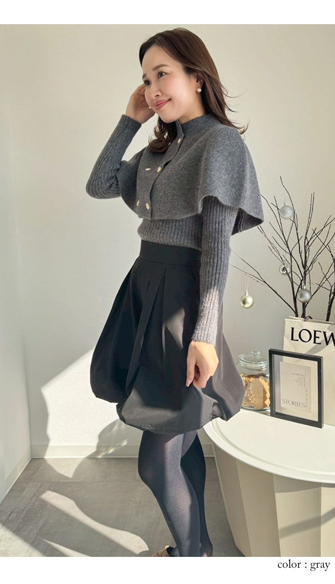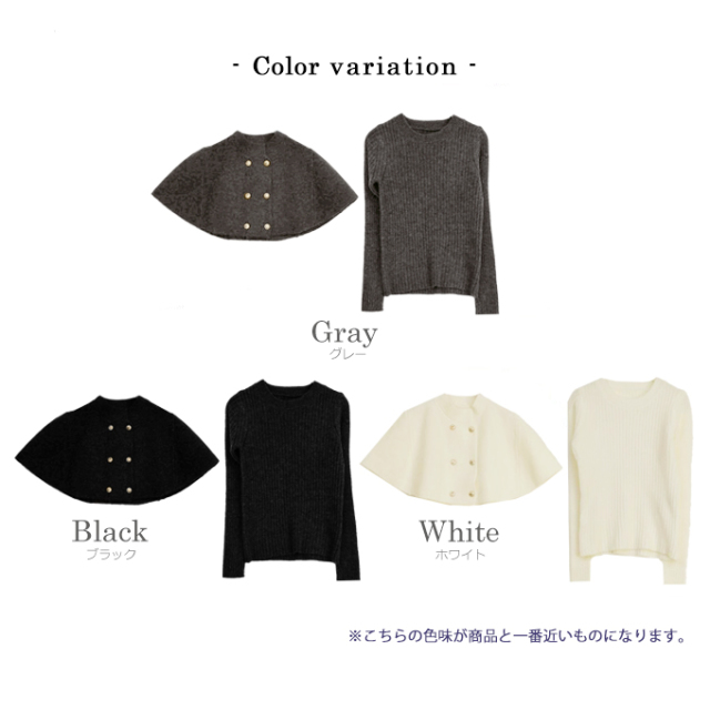 | 【表記サイズ】 F (フリー) 【ニット】 肩幅:約32cm バスト:約78cm 袖丈:約61cm 着丈:約53cm 【ケープ】 ゆき丈:約40cm 着丈:約34cm ※平置き採寸の為若干のブレがございます。 |