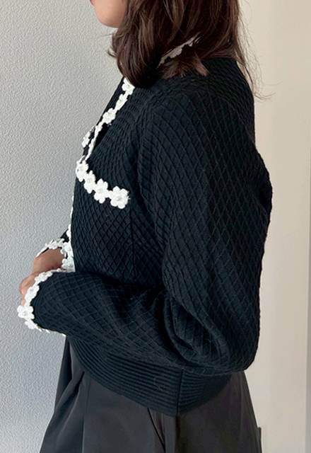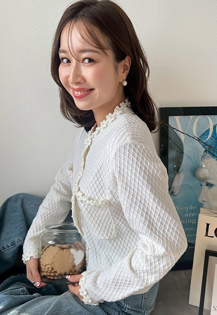 | アクリル60% ナイロン30% ウール5% シルク5% 【裏地】なし 【伸縮性】あり 【透け感】ホワイトあり 【洗濯取り扱い】 手洗い 40℃ 漂白剤使用禁止 タンブル乾燥禁止 日陰で平干し アイロン 110℃ ドライクリーニング石油系のみOK(弱) ウエットクリーニングOK(弱) |