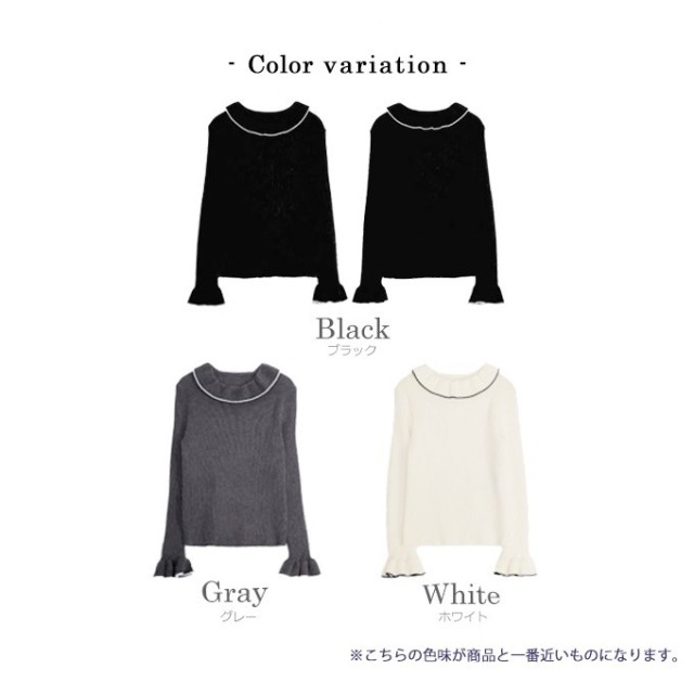 | 【表記サイズ】 F (フリー) 肩幅:約39.5cm バスト:約80cm 袖丈(フリル含む):約62.5cm 着丈:約59.5cm ※平置き採寸の為若干のブレがございます。 |