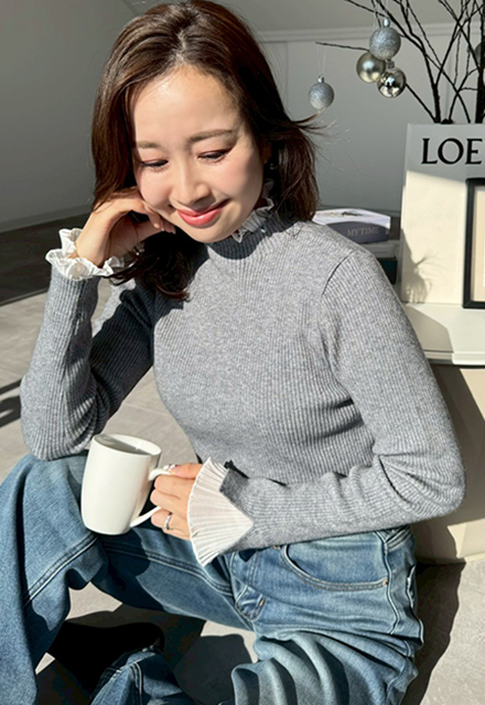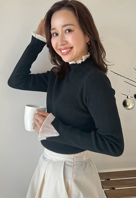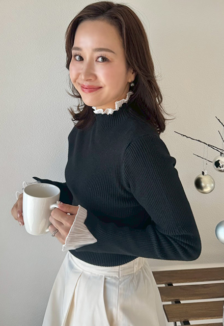 | 【表記サイズ】 F (フリー) 肩幅:約35cm バスト:約79cm 袖丈(フリル含む):約60cm 着丈:約56.8cm ※平置き採寸の為若干のブレがございます。 |