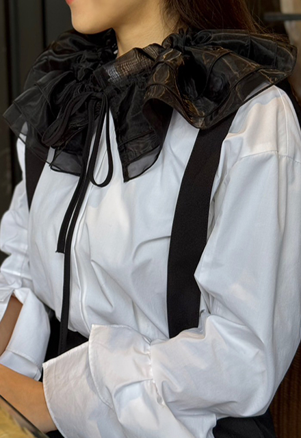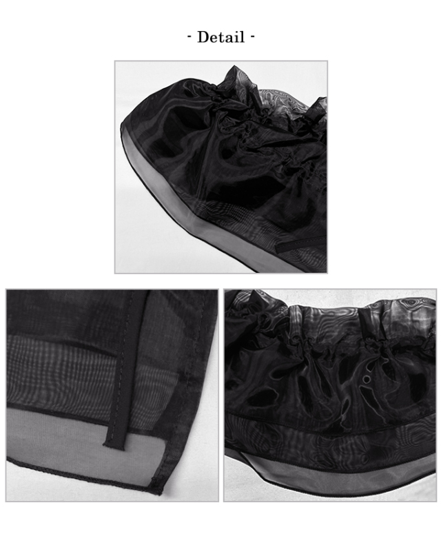 | ポリエステル100% 【裏地】なし 【伸縮性】なし 【透け感】あり 【洗濯取り扱い】 手洗い 40℃ 漂白剤使用禁止 タンブル乾燥禁止 日陰で平干し アイロン 110℃ ドライクリーニング石油系のみOK(弱) ウエットクリーニングOK(弱) |