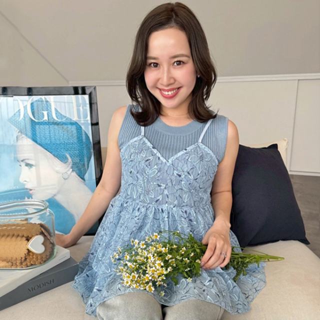 | 【表記サイズ】 F (フリー) 【ノースリーブニット】 肩幅:約34cm バスト:約73cm 着丈:約55cm 【キャミソール】 バスト:約84cm 着丈:約49cm ※平置き採寸の為若干のブレがございます。 |