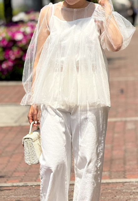 | ポリエステル100% 【裏地】なし 【伸縮性】トップス:袖口あり 【透け感】トップスあり 【肩ひも】キャミソール:調節あり 【バックファスナー】トップス・キャミソールあり 【洗濯取り扱い】 手洗い 40℃ 漂白剤使用禁止 タンブル乾燥禁止 日陰で平干し アイロン 110℃ ドライクリーニング石油系のみOK(弱) ウエットクリーニングOK(弱) |