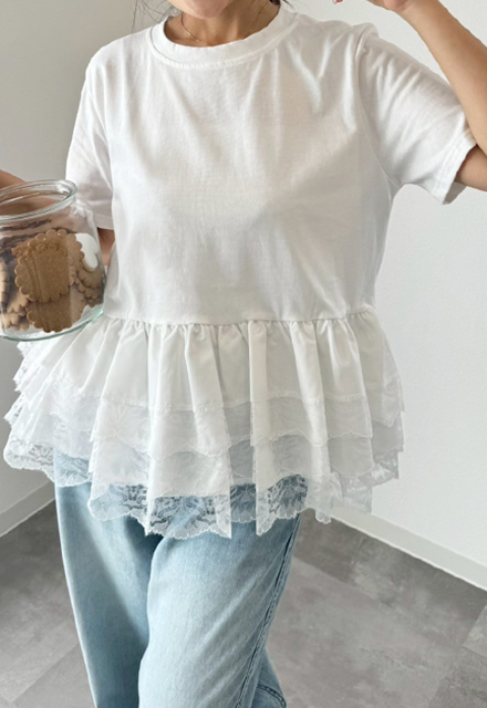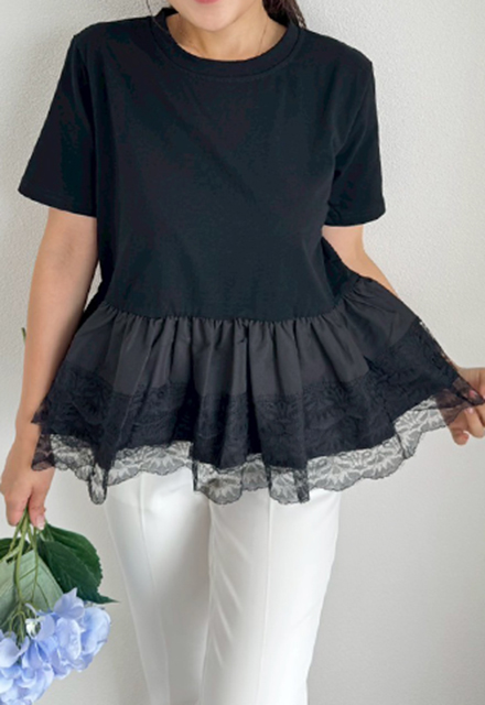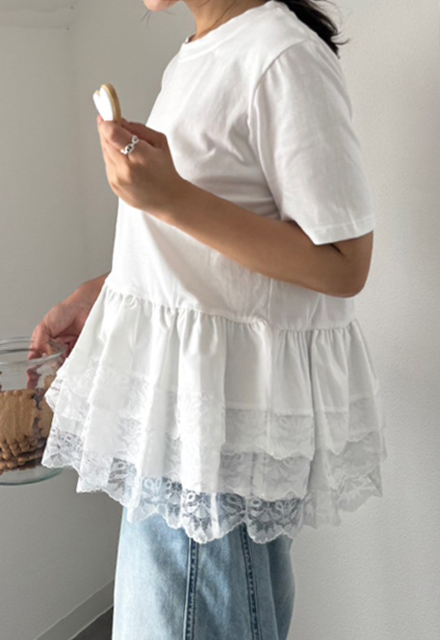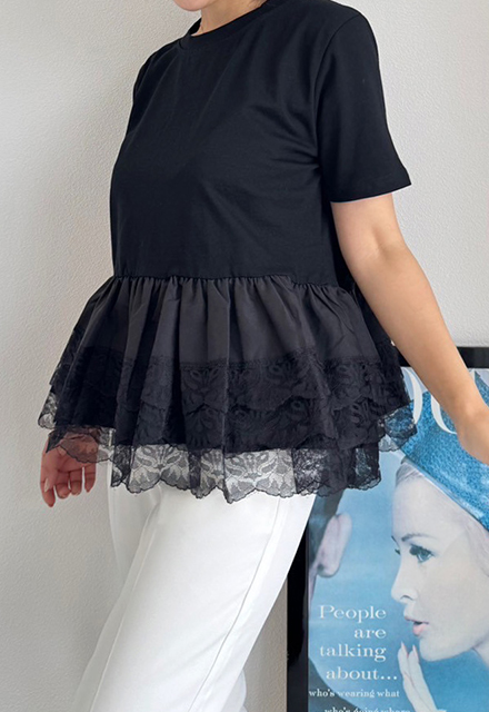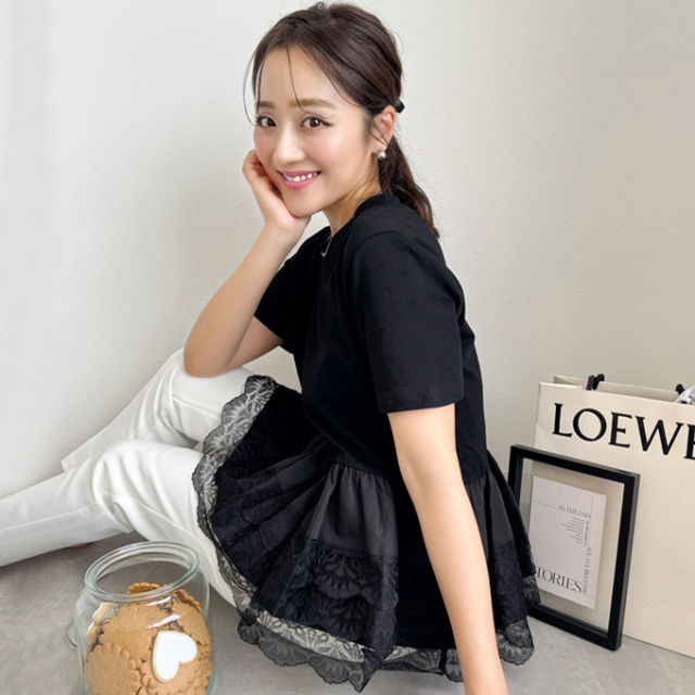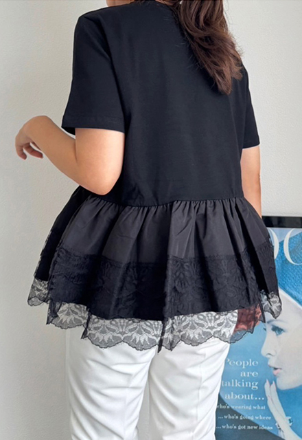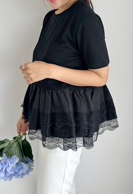 | 【表記サイズ】 F (フリー) 肩幅:約39cm バスト:約92cm 袖丈:約21cm 着丈:約59.5cm ※平置き採寸の為若干のブレがございます。 |