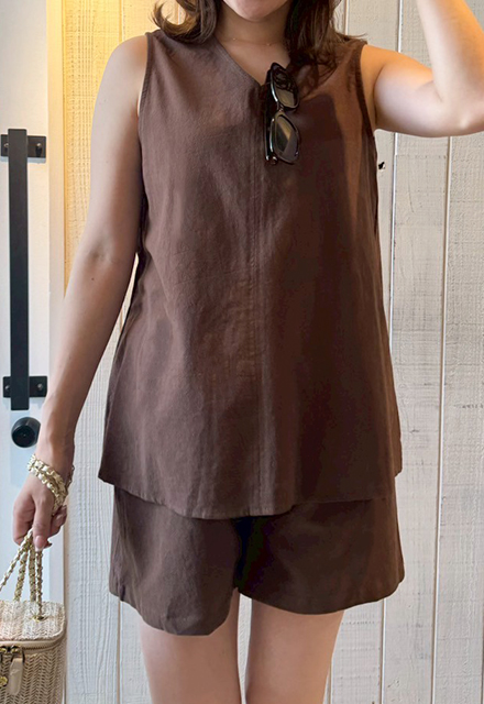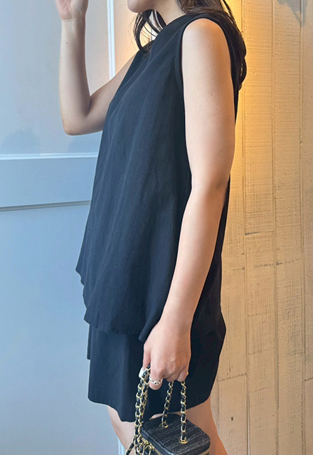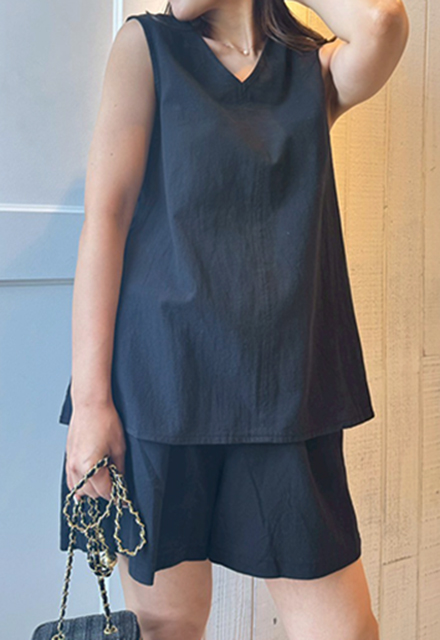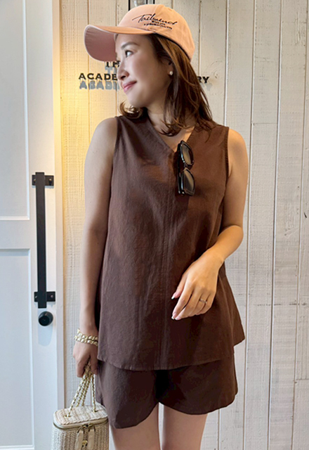 | 【表記サイズ】 F (フリー) 【トップス】 肩幅:約35cm バスト:約94cm 着丈:約63.7cm 【パンツ】 ウエスト:約66cm ヒップ:約94cm 総丈:約41cm ※平置き採寸の為若干のブレがございます。 |