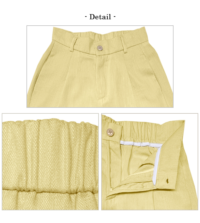 | ポリエステル100% 綿35% 【裏地】なし 【伸縮性】なし 【透け感】ホワイトあり 【バックゴム】あり 【ポケット】両サイドあり 【ベルト通し】あり 【洗濯取り扱い】 手洗い 40℃ 漂白剤使用禁止 タンブル乾燥禁止 日陰で平干し アイロン 110℃ ドライクリーニング石油系のみOK(弱) ウエットクリーニングOK(弱) |