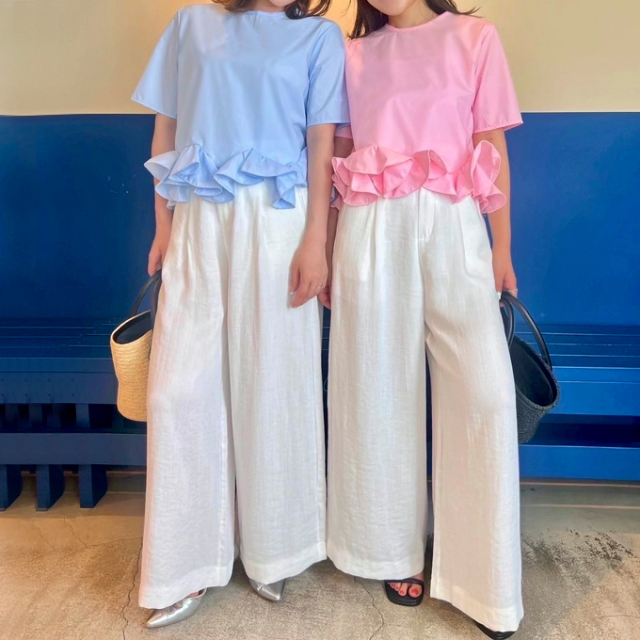 | ブルー着用モデルはayane 身長159cm Mサイズ着用 ピンク着用モデルはyuyu 身長153cm Sサイズ着用 |