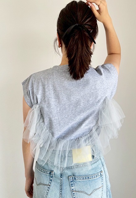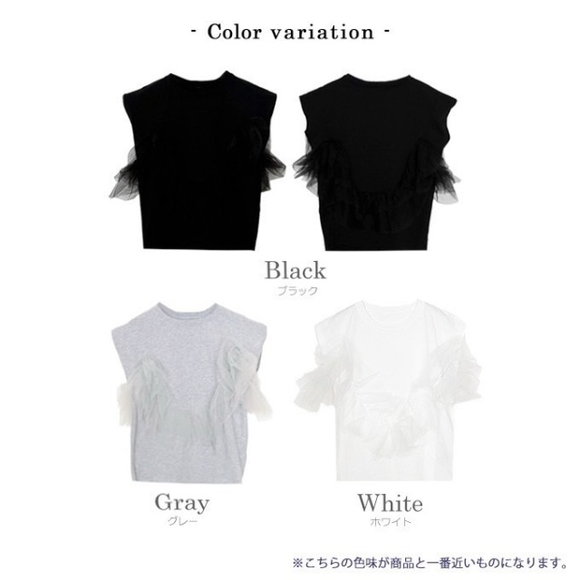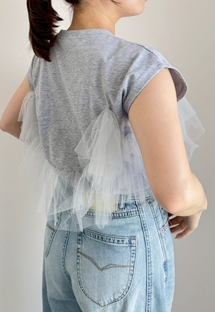 | 【表記サイズ】 F (フリー) 肩幅:約49cm バスト:約97cm 袖丈:約15.5cm 着丈:約62cm ※平置き採寸の為若干のブレがございます。 |