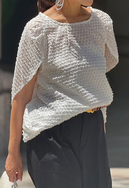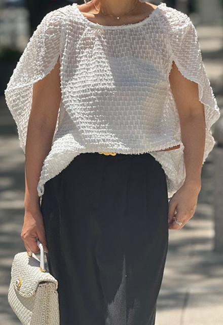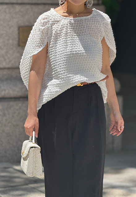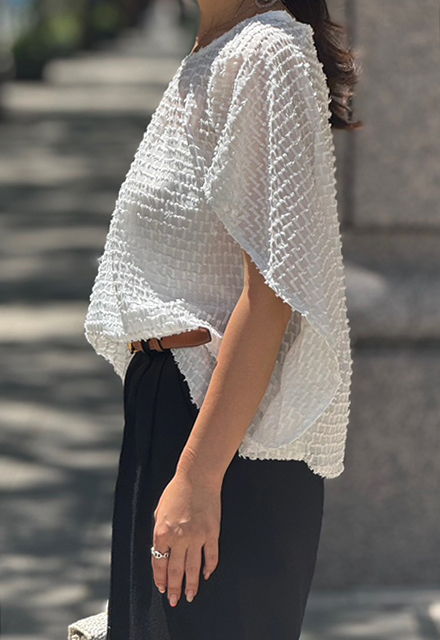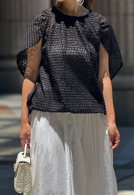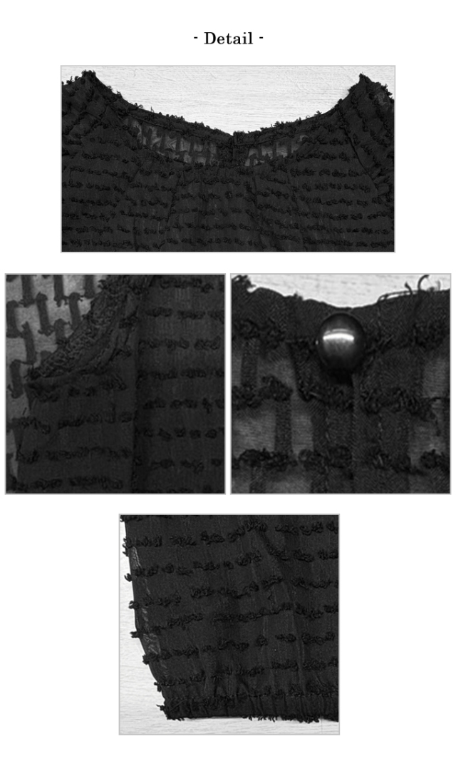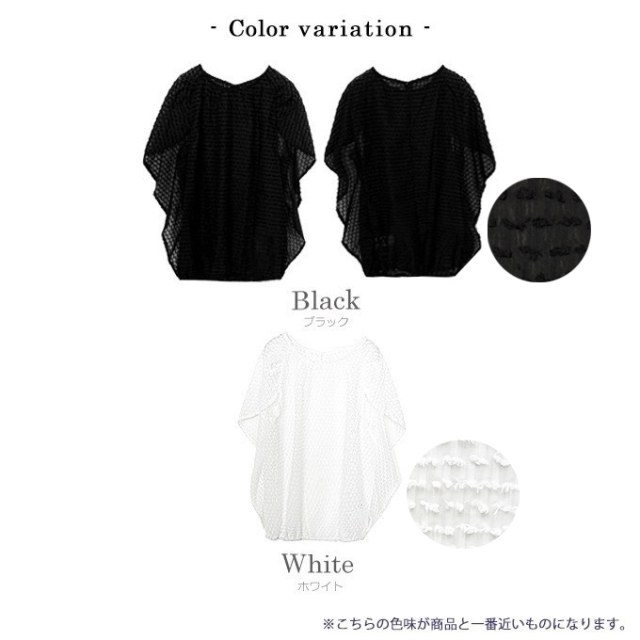 | ポリエステル100% 【裏地】なし 【伸縮性】裾部分あり 【透け感】あり 【バックボタン】あり 【洗濯取り扱い】 手洗い 40℃ 漂白剤使用禁止 タンブル乾燥禁止 日陰で平干し アイロン 110℃ ドライクリーニング石油系のみOK(弱) ウエットクリーニングOK(弱) |