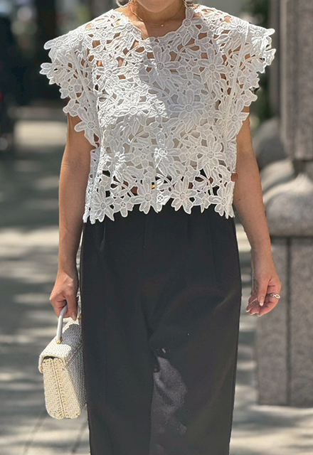 | 綿100% 【裏地】なし 【伸縮性】なし 【透け感】あり 【洗濯取り扱い】 手洗い 40℃ 漂白剤使用禁止 タンブル乾燥禁止 日陰で平干し アイロン 110℃ ドライクリーニング石油系のみOK(弱) ウエットクリーニングOK(弱) |